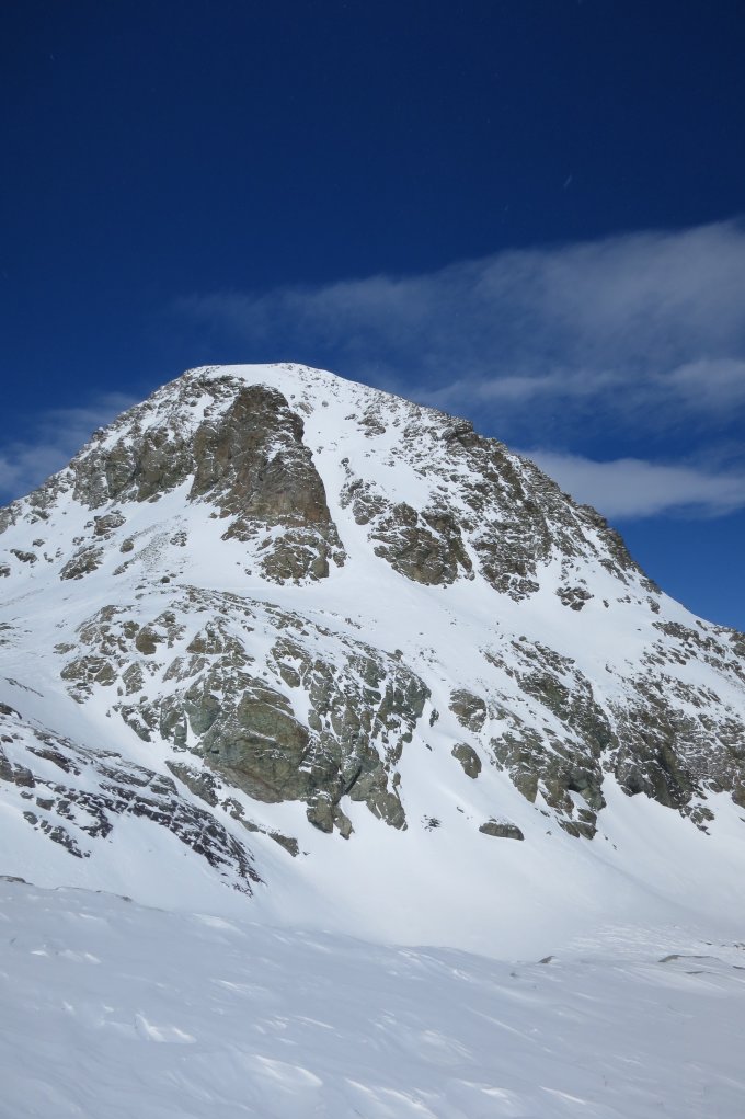 Gute Verhältnisse auf der Route von Mulegns. Schneeverhältnisse sind vom starken Wind geprägt: Triebschneeansammlungen und windgepresster Schnee wechseln sich ab. Im oberen Teil des Vadret Piz Platta wunderbarer Pulver, ab 2800m dann unterschiedlich je nach Exposition. Eisige Stellen im Süd-Couloir, danach Trieb-/&Trittschnee bis zum Gipfel.