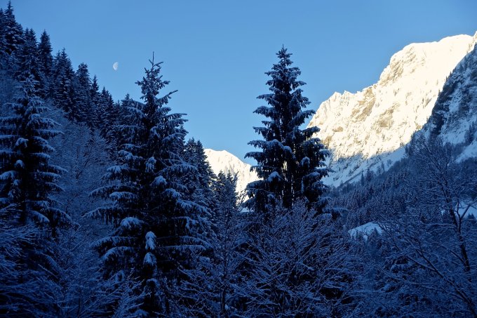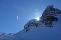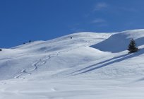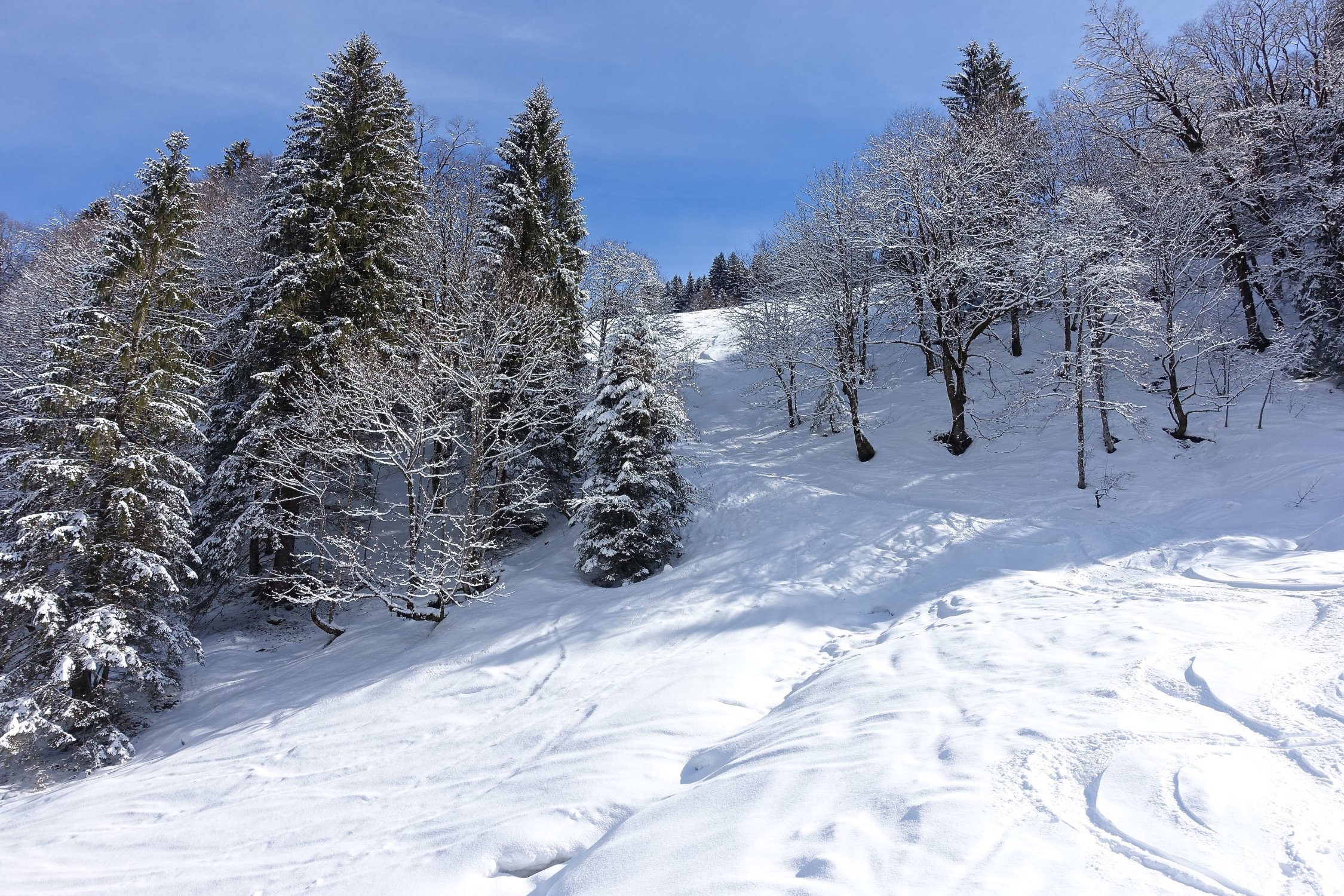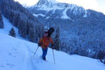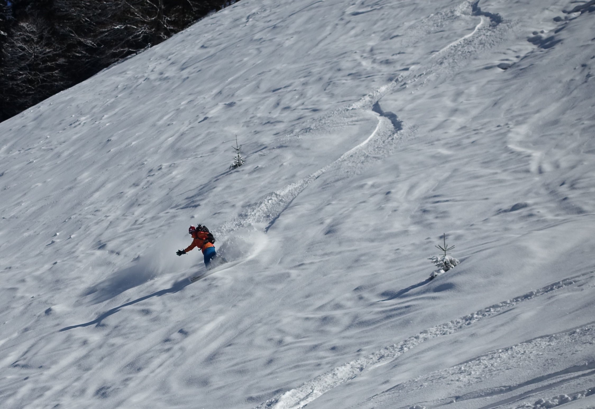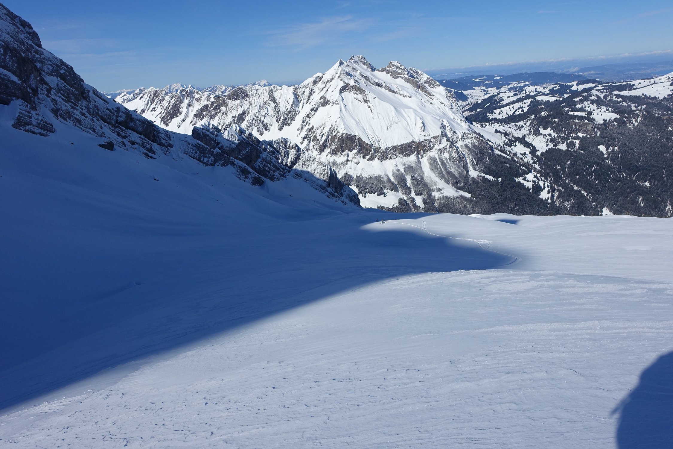 Top Verhältnisse! Pulver auf der gesamten Route. Unten etwa 10 cm, oben 20 - 30 cm. Zuoberst leicht vom Wind bearbeitet. Unten wegen den alten, harten Spuren etwas "unruhig", aber auch da sehr gut zum Fahren.