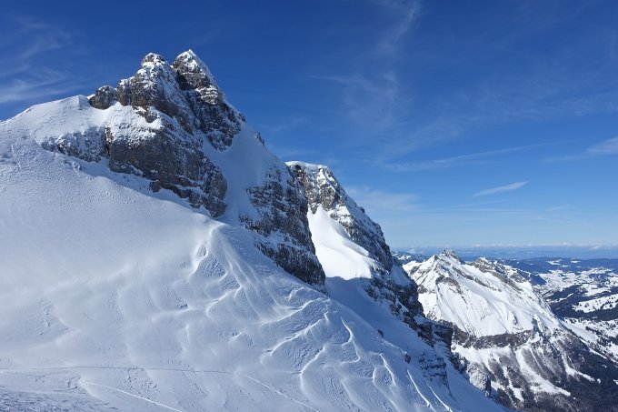 Sehr gute Fernsicht heute, nicht zuletzt wegen dem Föhn, welcher sich im oberen Teil der Route stark bemerkbar machte.