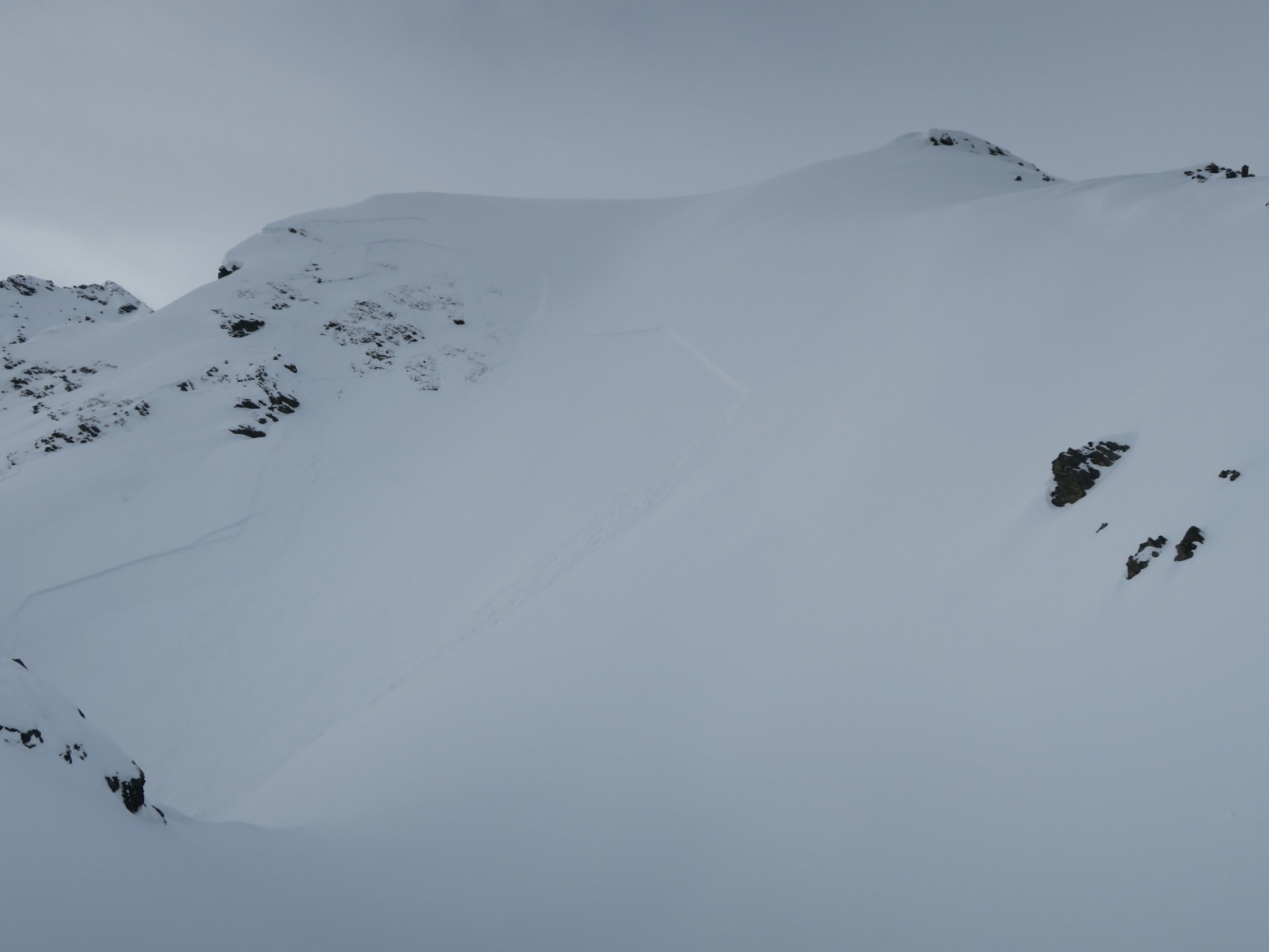 kleineres Schneebrett am Gipfelhang(siehe Bilder)