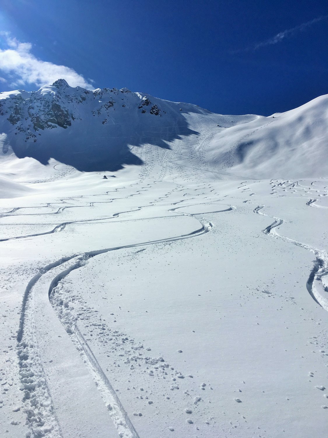 0 Grad in Monstein, ganzer Aufstieg und auf Gipfel windstill, sehr warm, bin im Hemd aufgestiegen. Pulverschnee ab Inneralp, Gipfelhang mit über 50 cm Neuschnee. Tolle Abfahrt vor allem im Gipfelhang hat es noch genügend Platz für eigene Spuren. Im unteren Teil hat der Pulver durch die Sonne und die entsprechende Wärme etwas gelitten, aber immer noch schön zu fahren. Abfahrt dem Inneralpbach kann ich nicht empfehlen.