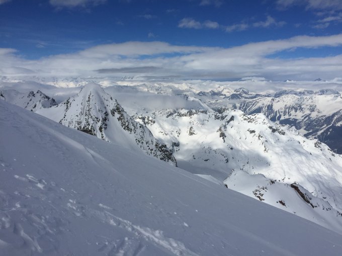 Der lange Waldaufstieg von Dalpe ging mit der Pulverschneeauflage ganz gut. Im Giovanelli Couloir sehr gute Verhältnisse. Man konnte mit den Ski auf guter Spur relativ weit hoch steigen und dann mit gutem Trittschnee ohne Steigeisen und Pickel zu Fuss durchsteigen. Auf guter Spur könnte man die freien Hänge problemlos bis zum Gipfel durchgehen. Angenehmes Wetter, kaum Wind. Auf dem Gipfel kamen ein paar Wolkenfetzen an, die sich später aber wieder auflösten.