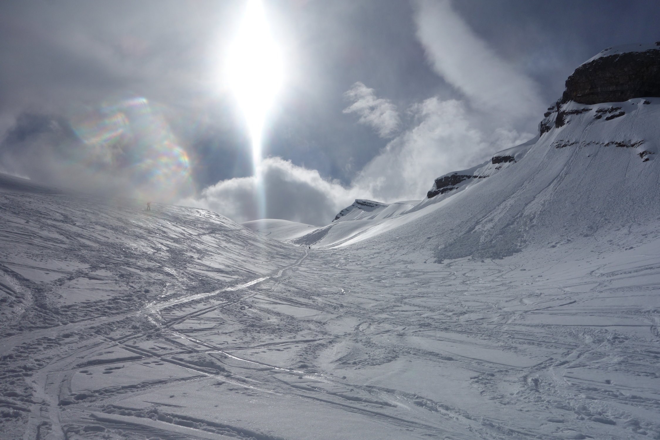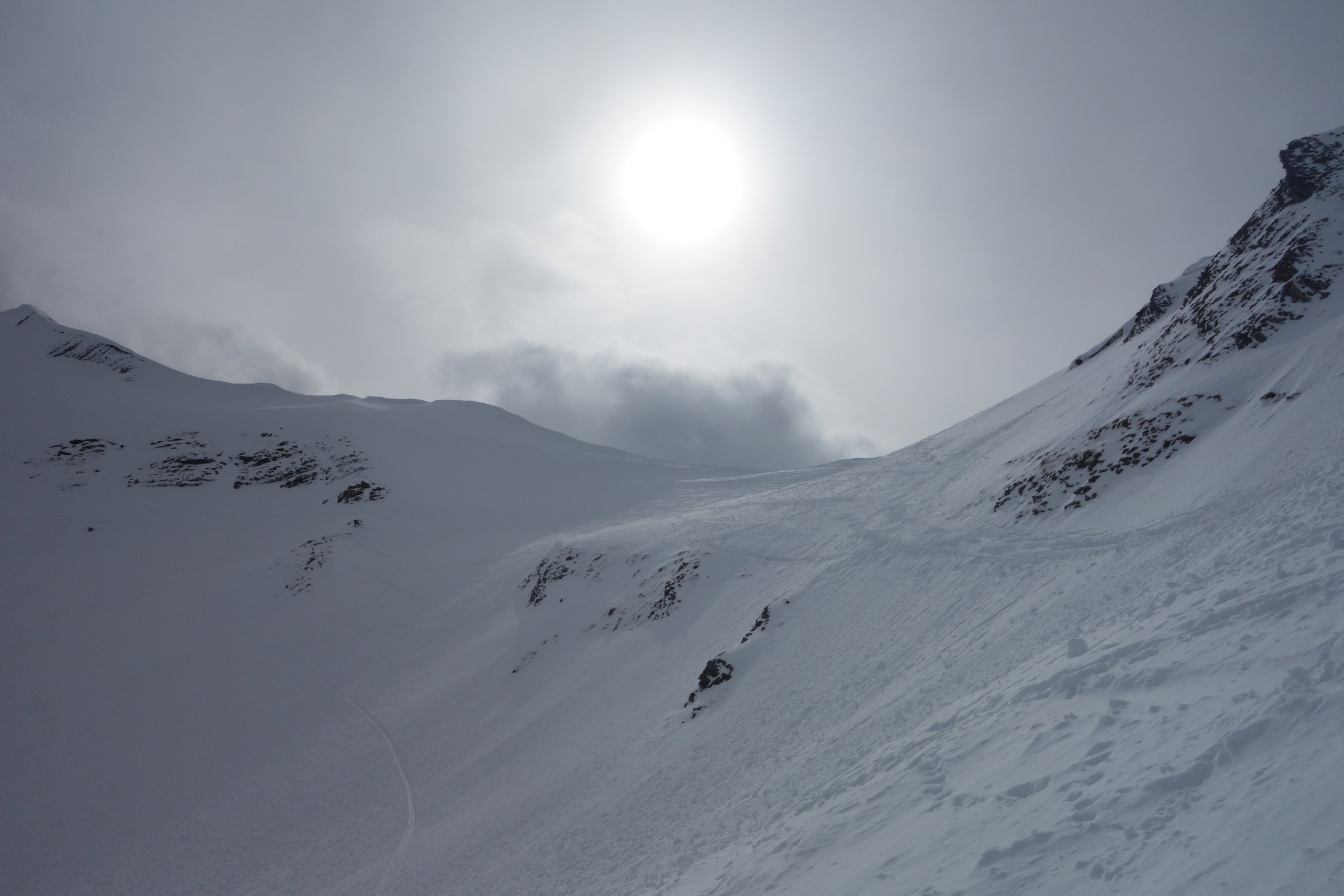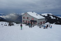 die ersten 50 hm müssen die Ski getragen werden. Dann auf dem Wanderweg fast durchgängige Schneedecke vorhanden, zumindest zum aufsteigen. Spur ausgelutsch aber durch den weichen Schnee einfach zu gehen. Bis zum Gipfel gute Spur. Die Traversierung ca. 30° hang parallel zum Grat war nicht zu nass, gute Spur vorhanden, jedoch Stollenbildung an den Fellen. Ab Skidepot in glat getretener Spur zum Gipfel. Mit SB-Boots etwas glatt, wenns gefriert braucht man Steigeisen. Abfahrt oben konnstant schwerer Schnee, ganz nett, ab ca. 2000m feuchter Bremsschnee - weniger Bögeli gfahre.