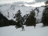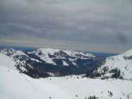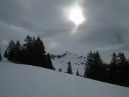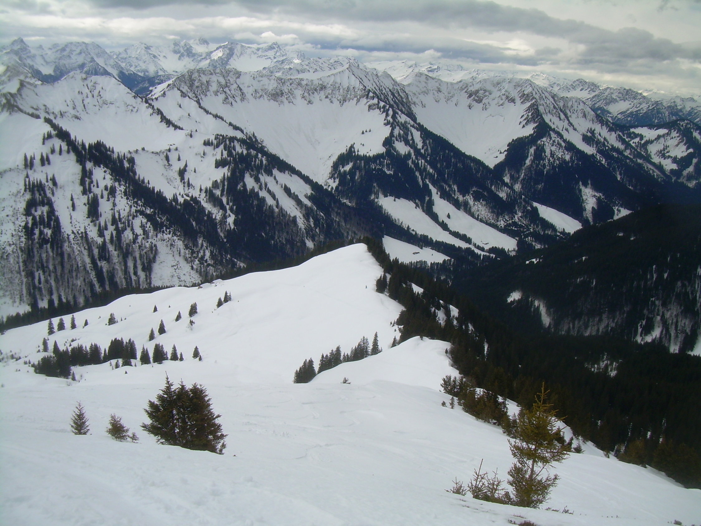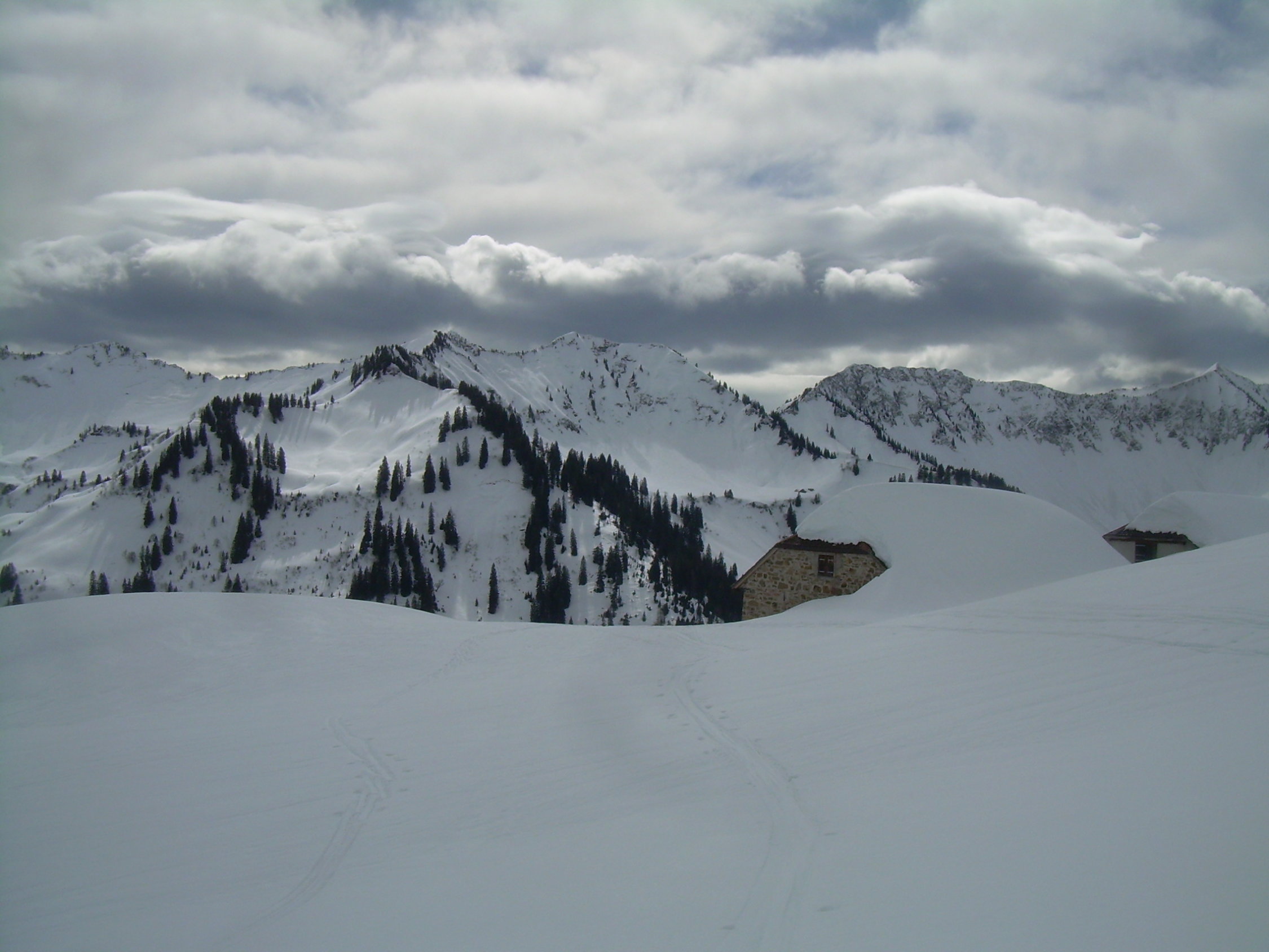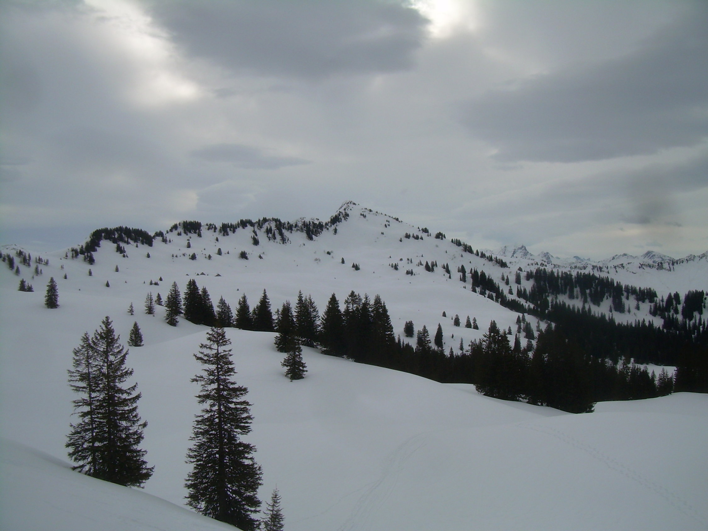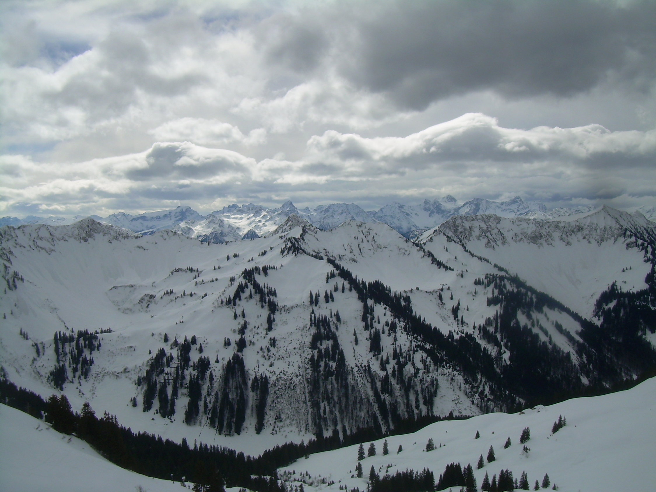Wettersituation: hochwolkig mit föhntypischen Fernsichten, Temperaturen im einstelligen Plusbereich. Der Föhnwind kam hier im Bregenzerwald schon recht warm daher, vermutlich in seinem Fall von den Bergen des Hauptkammes her bereits leicht "angeheizt" und blies in unterschiedlichen Stärken, jedoch nie wirklich heftig.