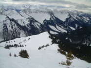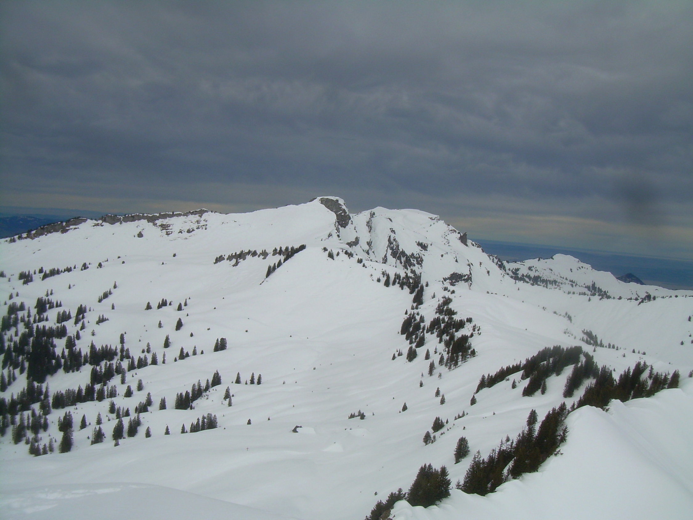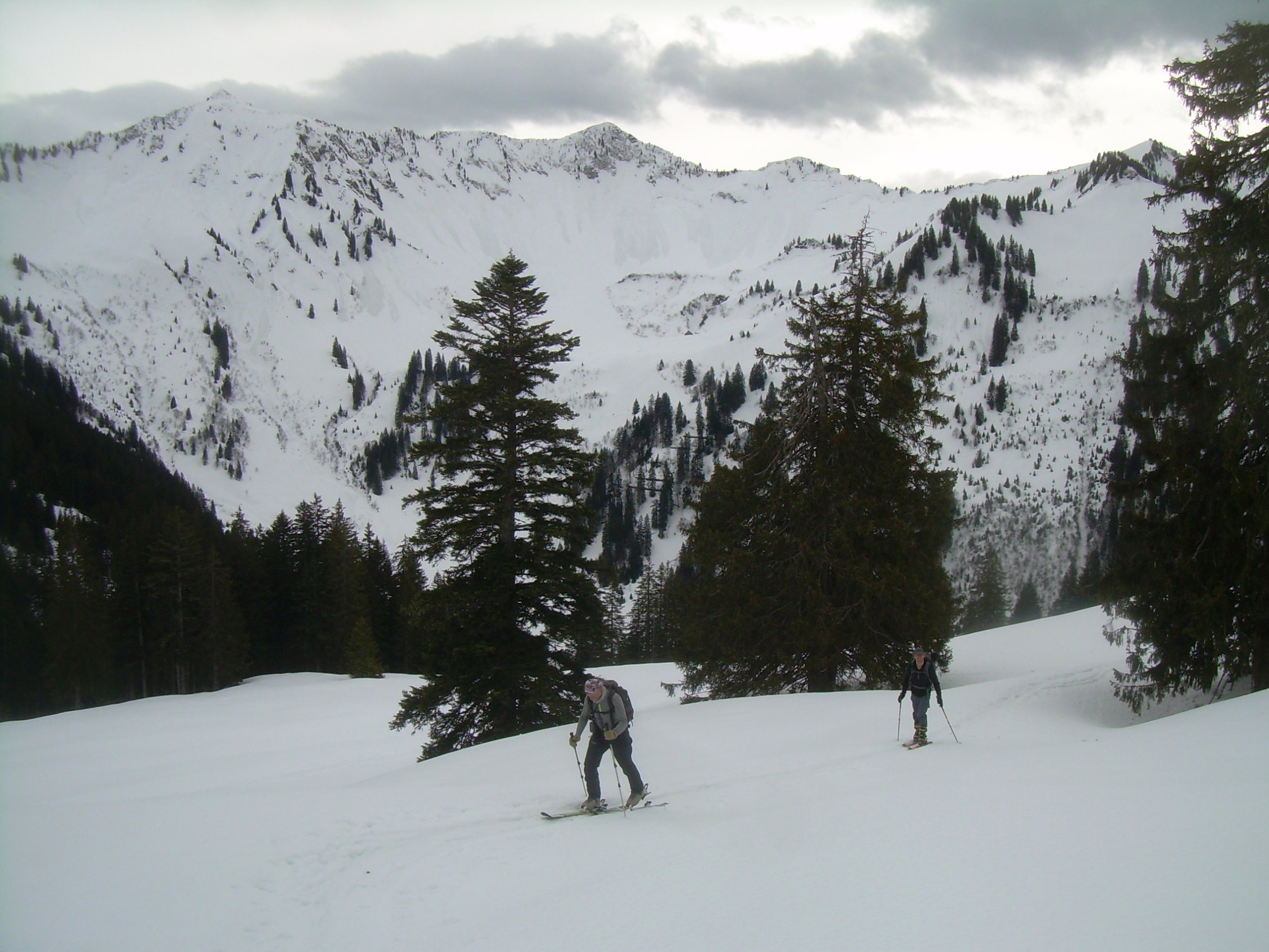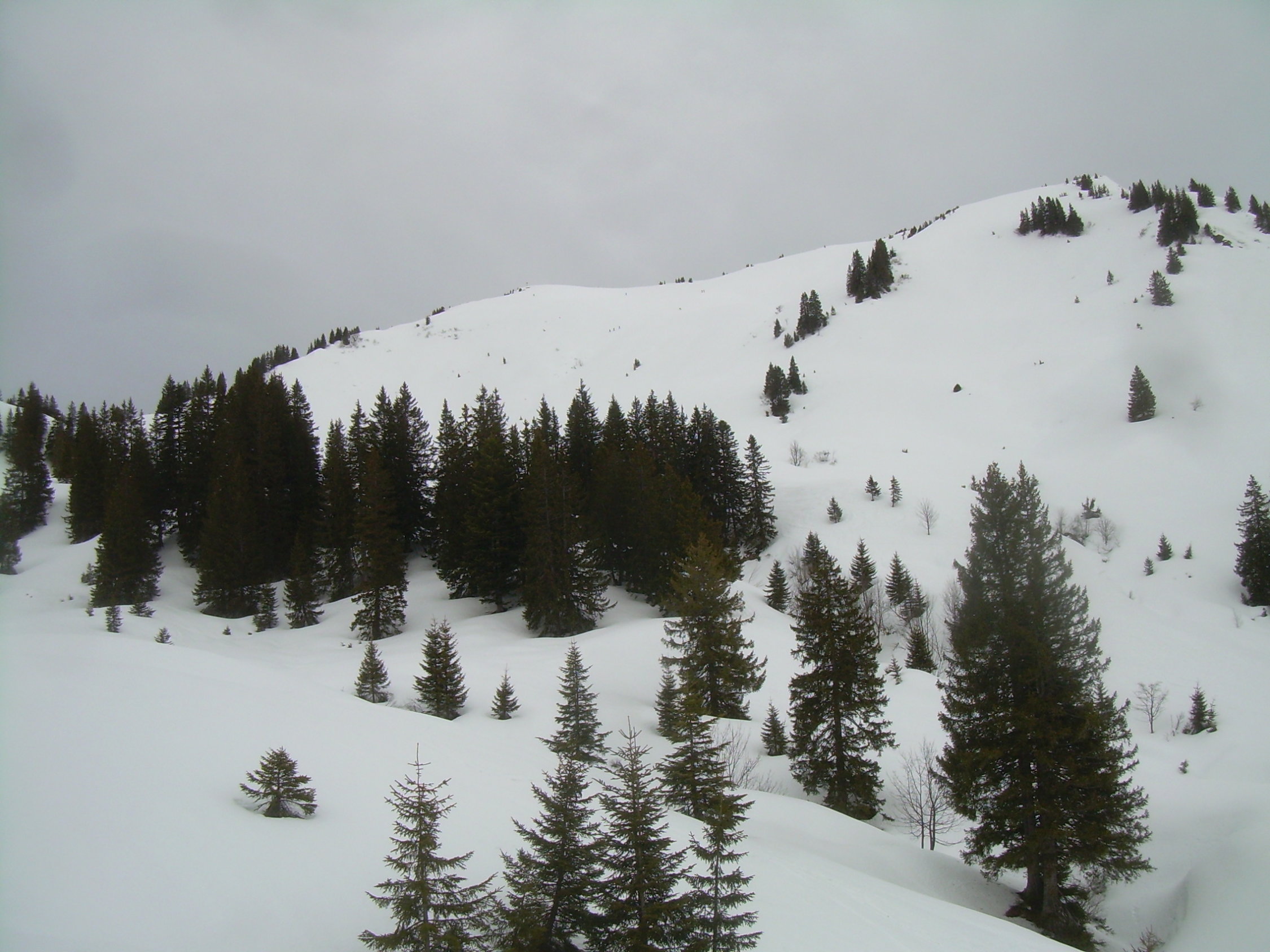 Schneedecke: durchfeuchtet, in der Aufstiegsspur tragend. Der Abstieg gg. 13 h war für mich mit Schneeschuhen etwas mühsam, da die Oberfläche der Schneedecke nicht mehr trug. Dennoch hatte ich Glück, dass die Sonne heute kaum durchkam, andernfalls wäre ich im Südhang des Gehrenfalben sicherlich bedient gewesen.