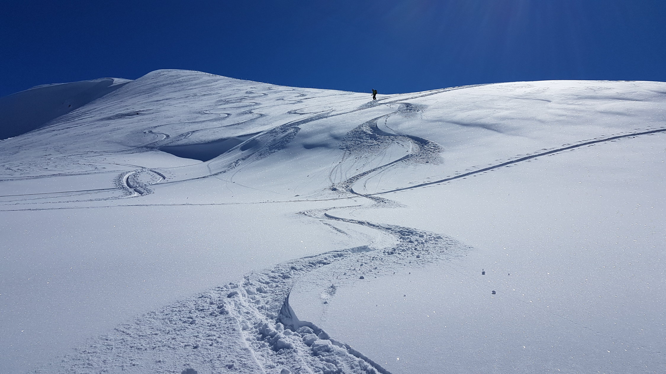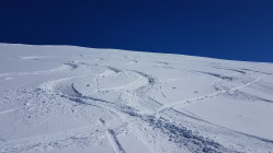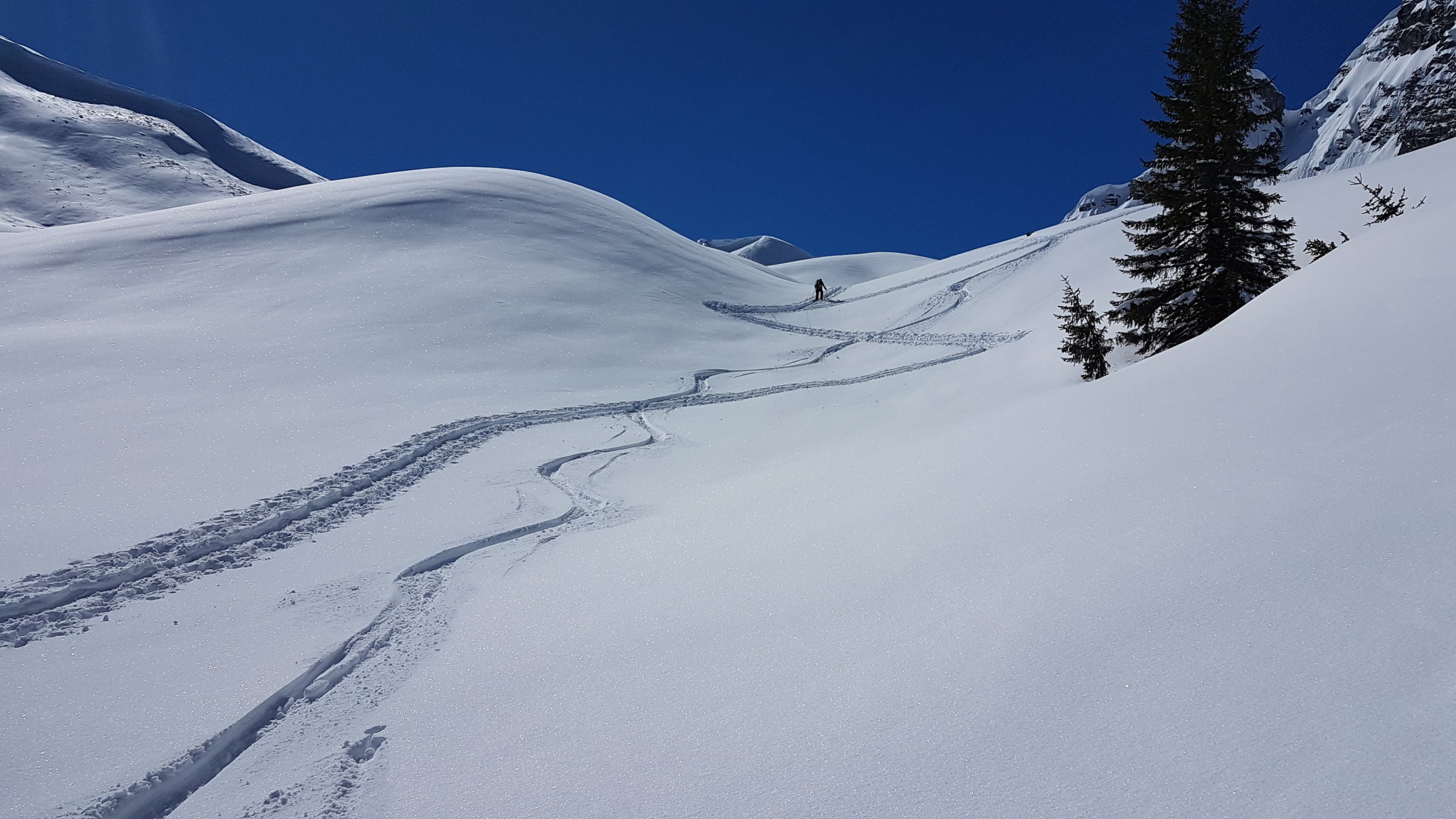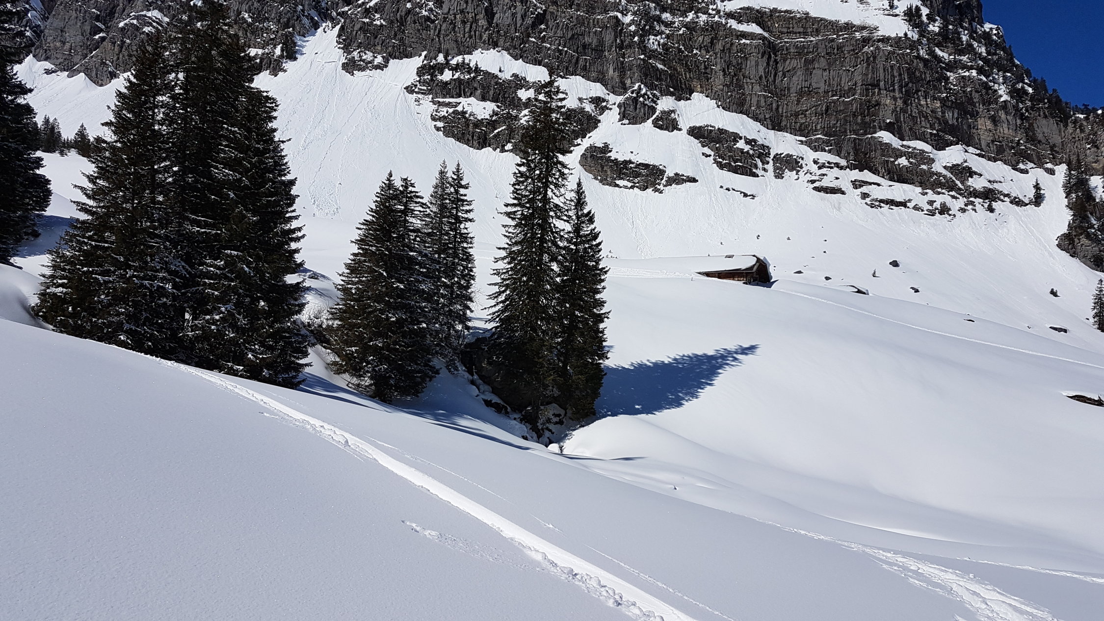 Was für ein Tag am Raufli! Wenn man früh genug abgefahren ist hatte es frischen Pulver auf der ganzen Route. Oben um die 20cm, beim Parkplatz nur noch ein Hauch.