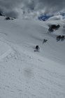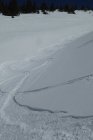 deutliche Gleitschneeanrisse rechts der Südrinne, in Abfahrtsrichtung.