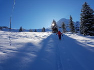 Schöner Pulverschnee ab verlassen der Strasse nach dem Waldaufstieg.