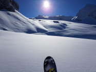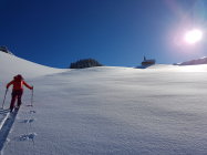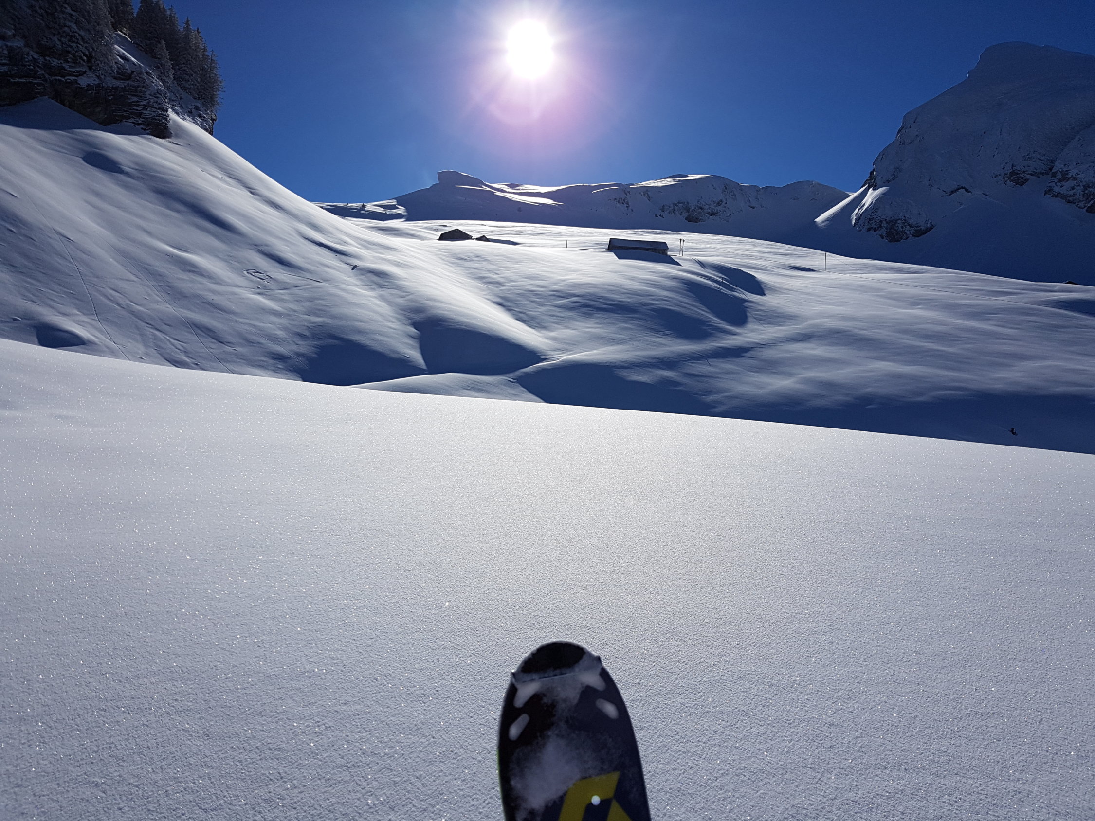 Früh auf die Skitour, somit noch Pulverschnee bis auf Höhe Druesberghütte. Unten bereits schwerer zu fahren. Strasse nach Weglosen in einwandfreiem Zustand.