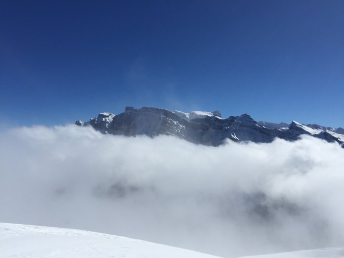 Das Wägital mit dem Stausee ist ein wunderschöner Anblick, drum fuhr ich heute wie alle Jahre mal dort hin. Ziel war der Mutteristock, für mich halt doch die Königstour hier hinten. Bei Innerthal war alles grün/braun, aber am anderen Ende des Stausees, also auf exakt gleicher Meereshöhe, hatte es sicher einen halben Meter Schnee. Halt ein Schattenloch, aber doch erstaunlich! Ich wählte den etwas längeren Aufstieg hintenrum über Aberen, durch einen traumhaften Winterwald. Ab Rinderweid gab es dann immer wieder Stollen an den Ski, was das Vergnügen etwas minderte. Allerdings musste man damit rechnen, denn es hat ab 1400 MüM sicher 30 cm Frischen gegeben! Sehr schöner Aufstieg, terrassiert und mit Blick auf Gemsen am Mutteriberg (Foto allerdings mässig geglückt...). Ab dem Rettungsschlitten dann drei kurze Traversen, bei denen Sturzverbot herrscht. Dann unschwierig zum Gipfel. Sehr schöne, lange Rast mit toller Aussicht in alle Richtungen. Die Abfahrt wählte ich oben über den Rund Chopf, dann auf der Normalroute. Vom Gipfel bis oberhalb Rinderweid Traumpulver zum Abwinken! Dann ein Wechsel von gut und Klebstoff bis zum Waldweg unten, und darauf problemlos zum Auto. Was für eine schöne Tour!