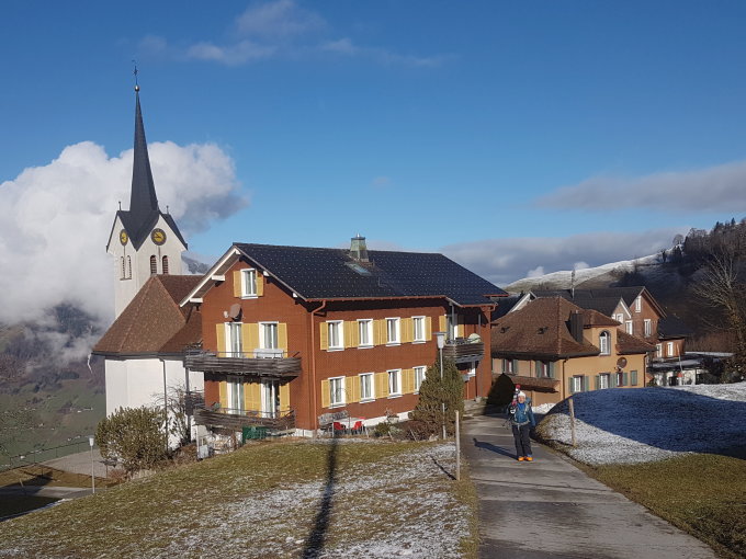 Start im Grünen. Nach 80 Hm reicht der Schnee knapp, um die Ski anzuziehen. Dann wird es schnell mehr. Über Nacht sind ca 15cm Pulver mit eher wenig Wind dazugekommen. Gipfelanstieg gut ohne Steigeisen machbar.