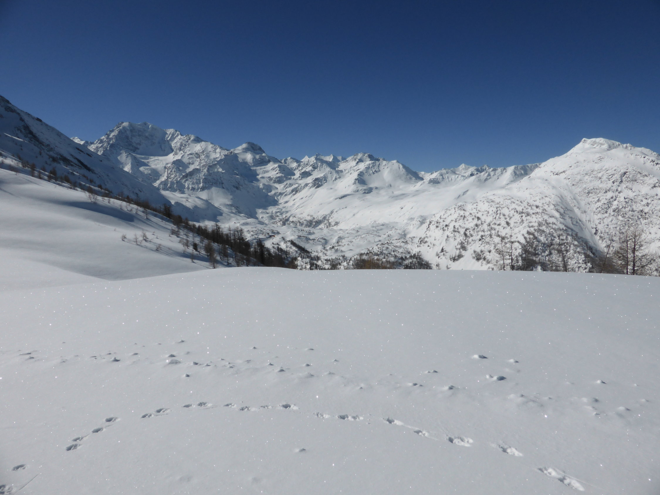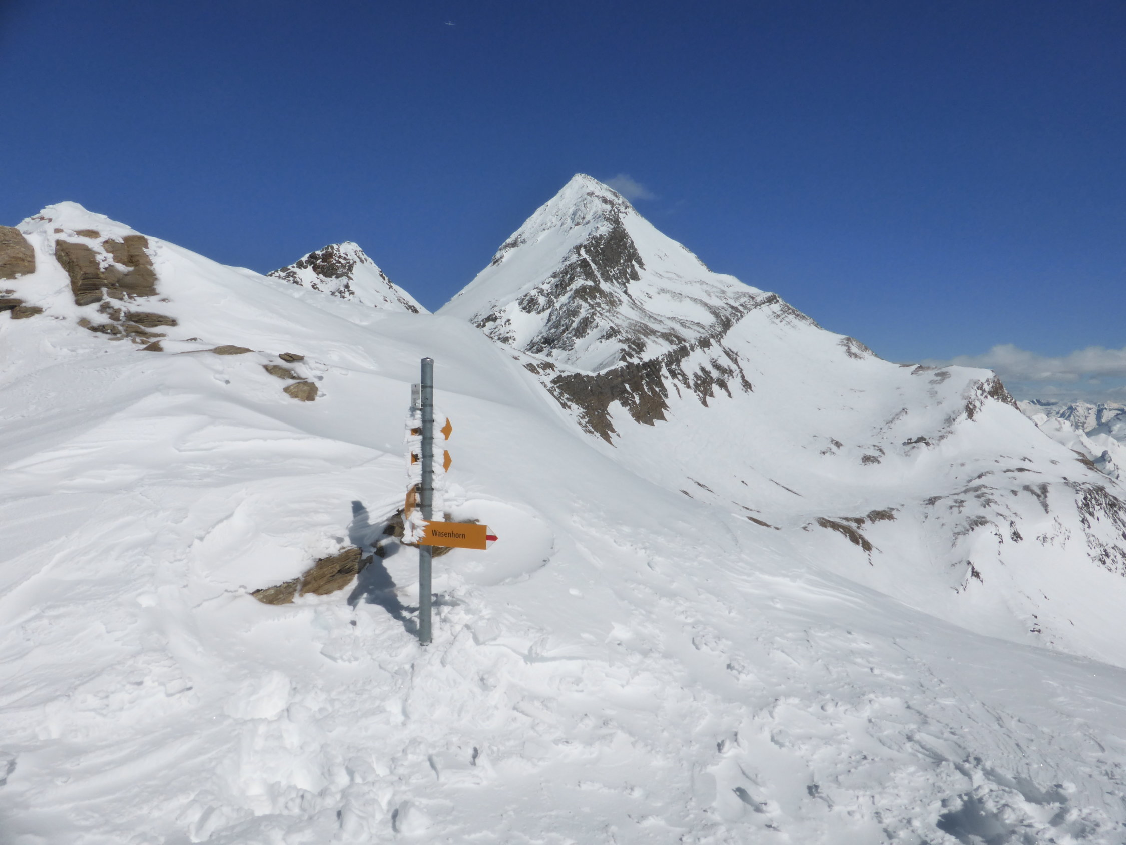 Wetter: Sonne pur, nur schwachwindig(Fön), in grösserer Höhe aber stark(Windfahnen an Monte Leone, Breithorn usw.), Temperatur sehr angenehm -6 Grad