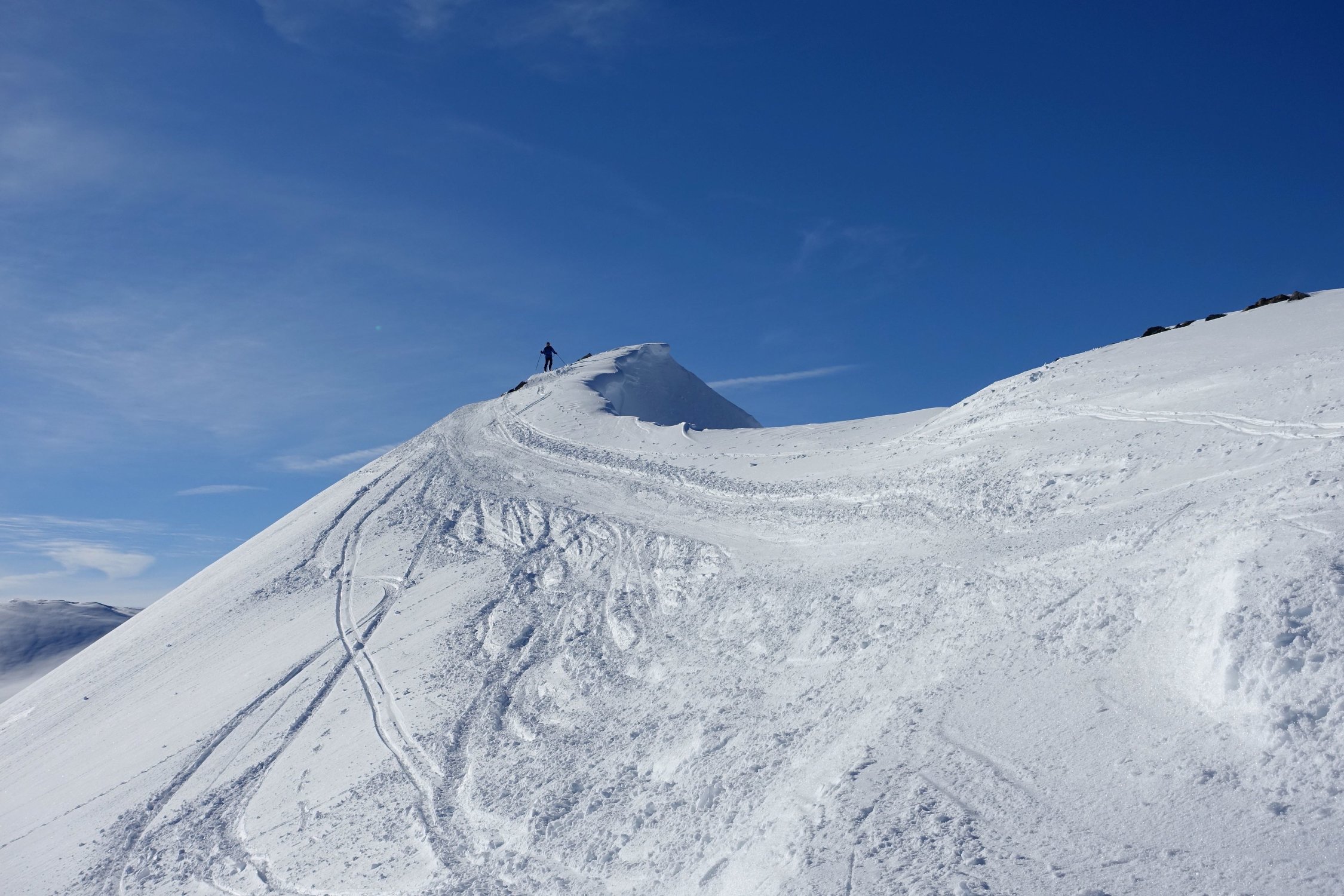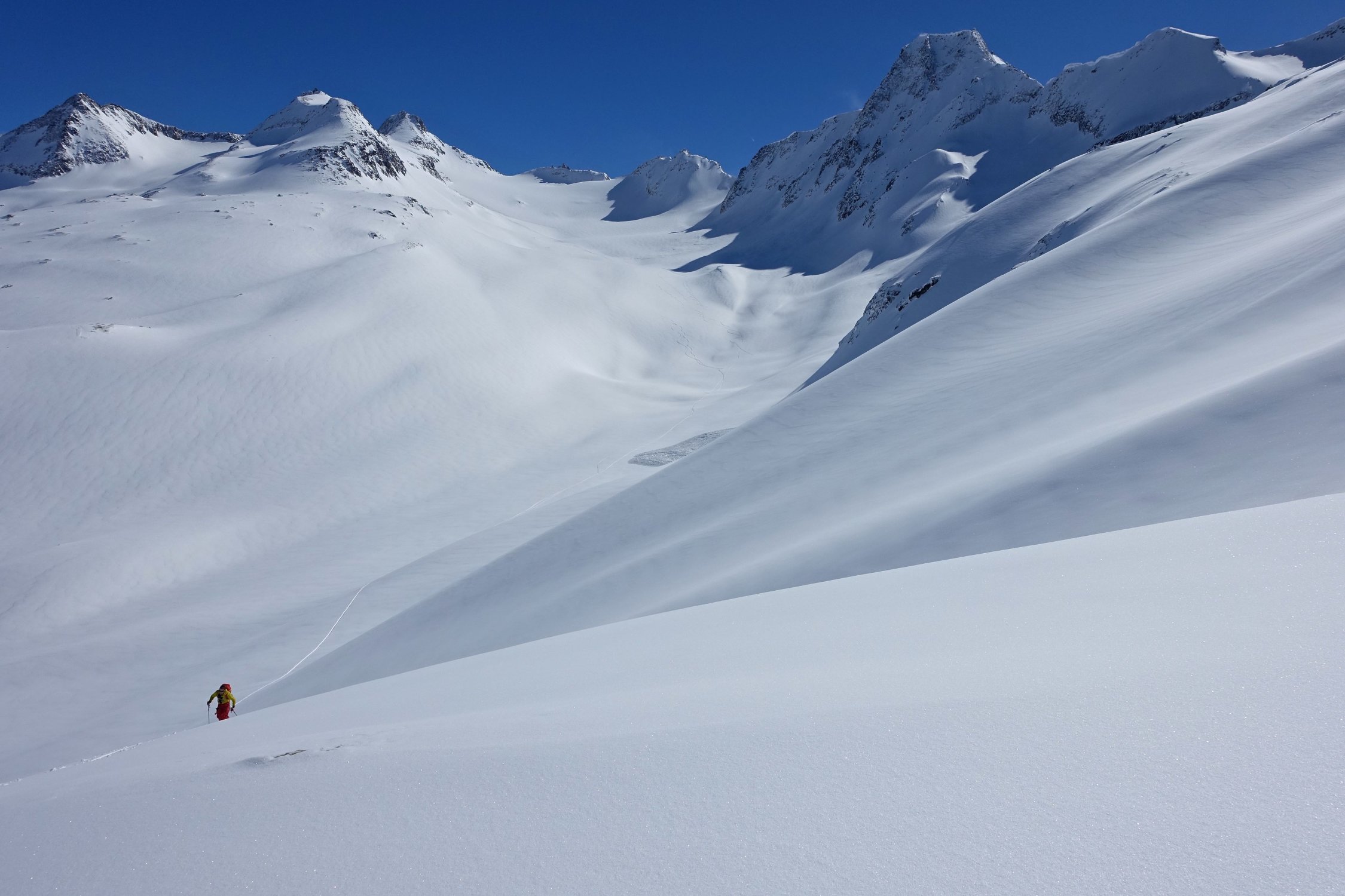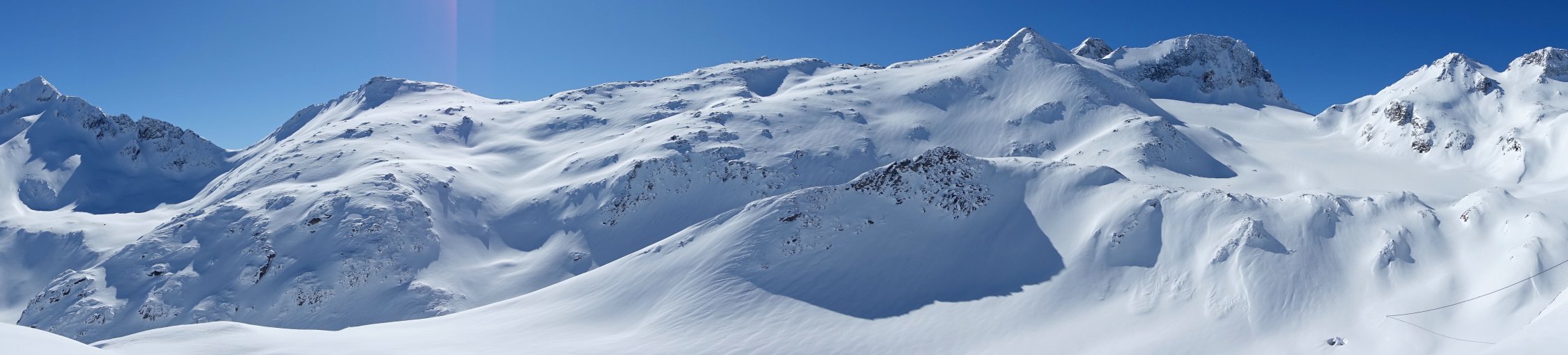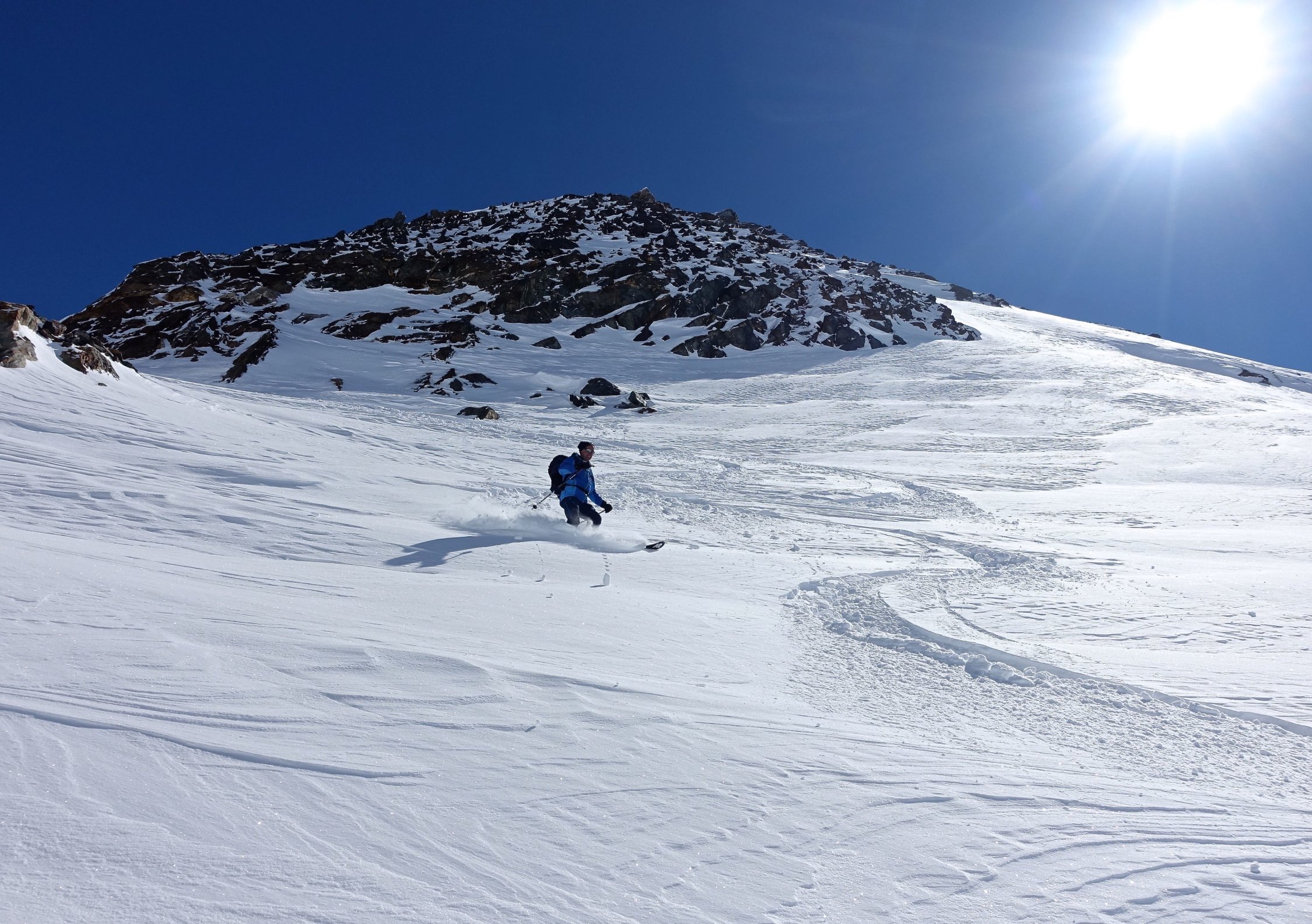 Top Wetter und herrlicher Pulverschnee auf der ganzen Route! Die Querung vom Leckipass zum Skidepot schien mir heute aber infolge sehr viel Triebschnee zu heikel, so dass wir auf den Gipfelaufstieg verzichteten. Dass spontane Schneebretter im Gebiet abgehen konnten, siehe die Bilder.