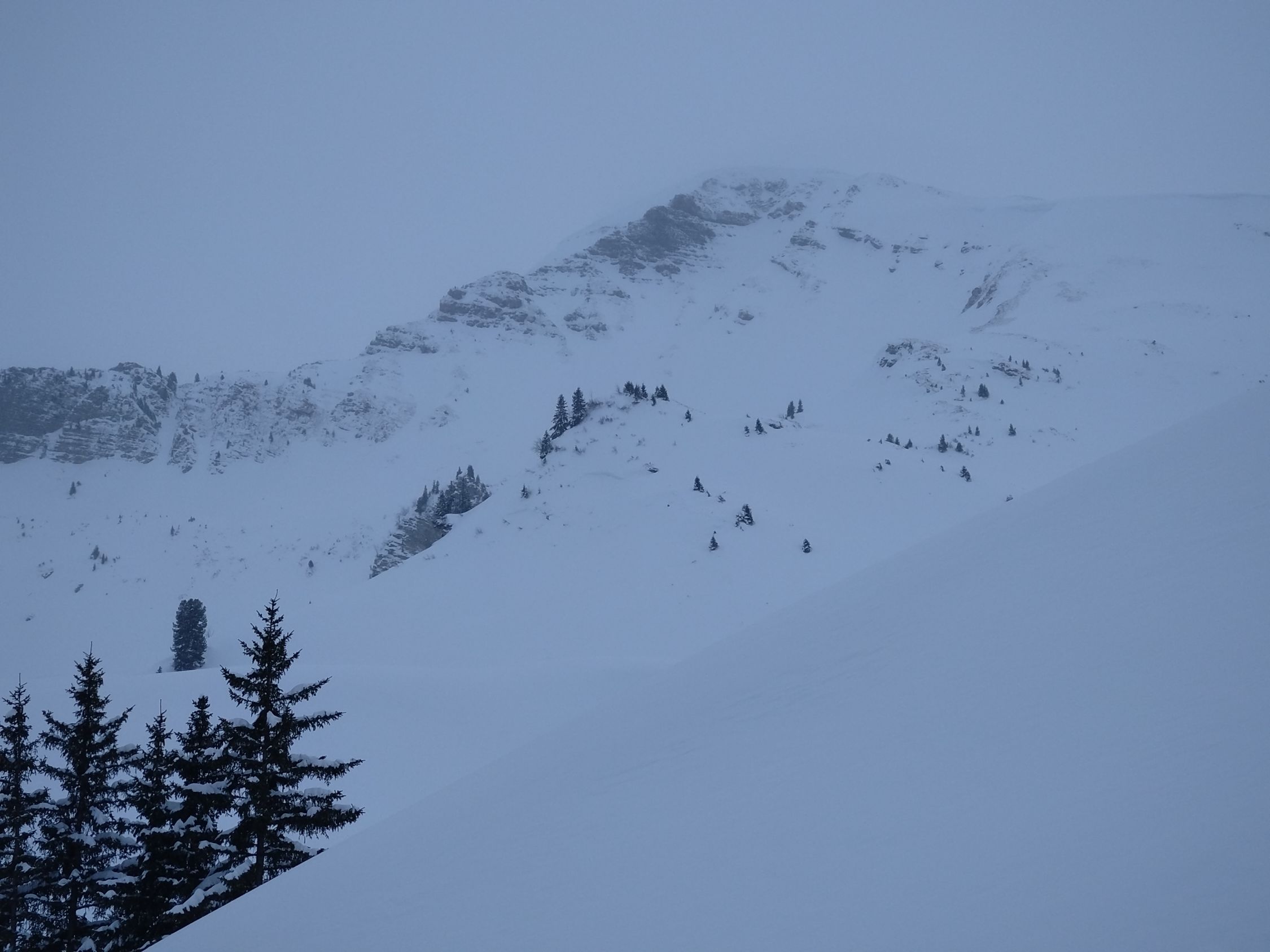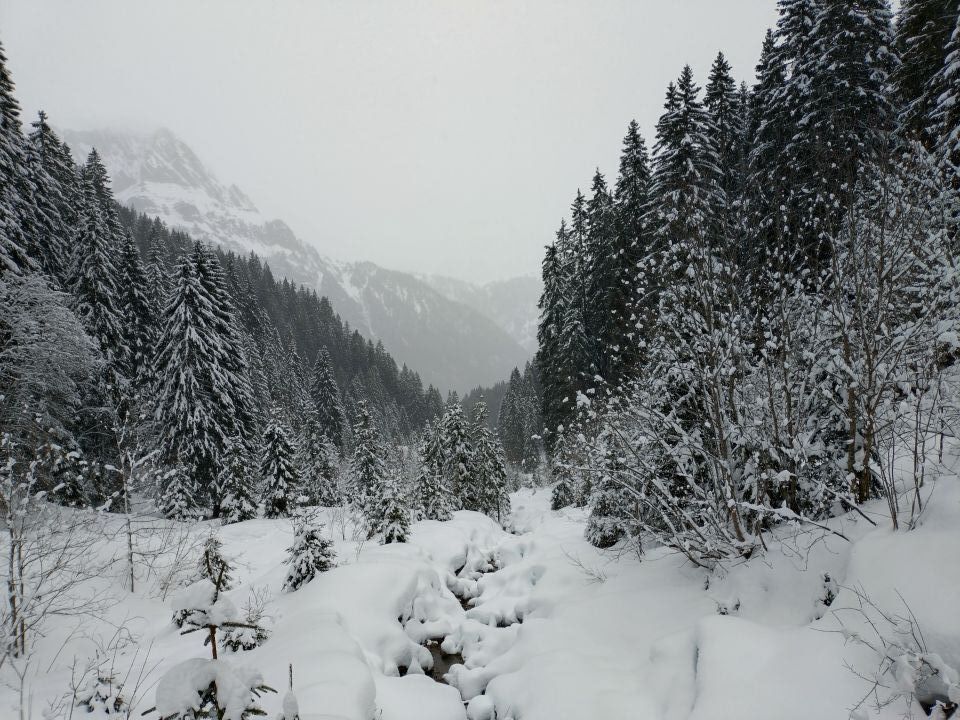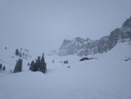 Unten wenig Schnee, aber es reicht gut. Ab dem Wald richtiges Winterwunderland, der Waldweg ist top zu gehen und zu fahren. Von oberhalb des Waldes bis zur Grimmifurgga top Pulver, sehr schön. Dann bis zum Gipfel recht abgeblasen. Sehr schöne Tour, es hat noch viel Platz für eigene Spuren.