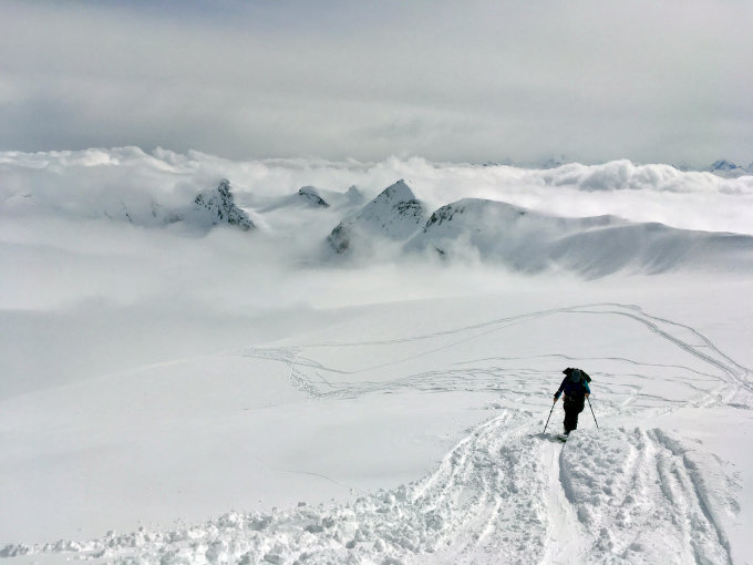 Sehr viel Schnee in der Route, ausgezeichnete Verhältnisse. Übergang vom Mittelgipfel zum Einstieg knifflig, am besten mit Fellen begehen (insbesondere Splitboarder). Abfahrt durchs Ammertetäli genau begutachten, Triebschnee, mit Abstand fahren. Im untersten Waldabschnitt bei den Simmenfällen nur noch wenige Zentimeter Nasschnee.