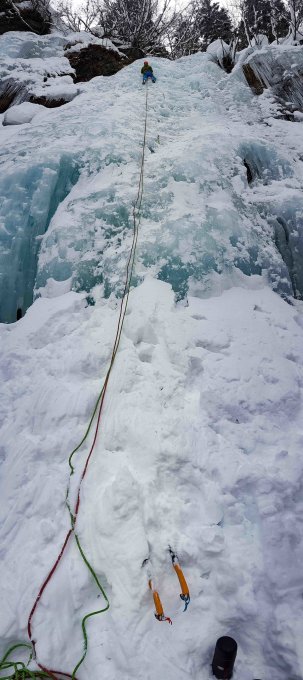 Einzig der Schnee auf dem Eis hat etwas gestört (sonst ausgezeichnet). Oben raus war das Eis etwas splittrig,bis dahin aber sehr gut.