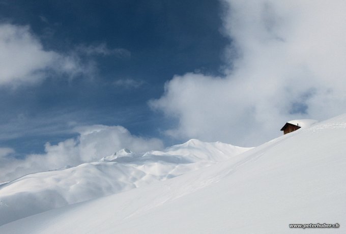 Sonnig mit Wolken. In den Osthängen schöner Pulver. Sonst auch leichter Deckel. Weiter unter etwas verfahren.