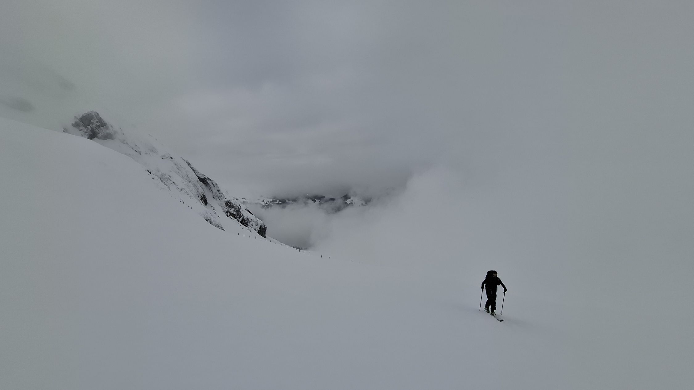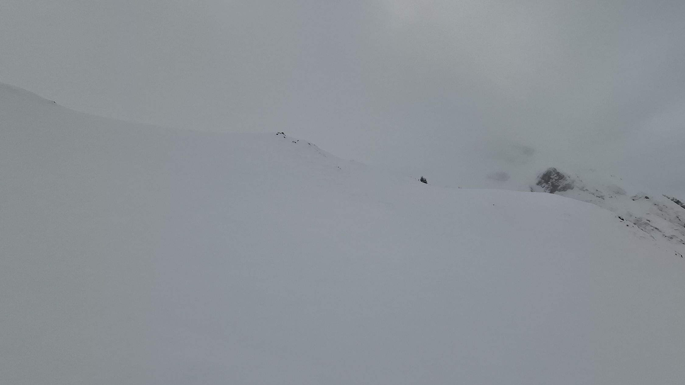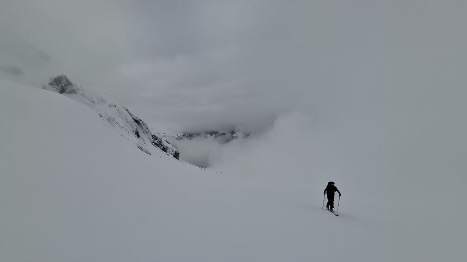 Am Morgen noch neblig mit entsprechend eingeschränkter Sicht. Beim Aufstieg kurze Phasen mit etwas besserer Sicht, insgesamt jedoch häufig im „Blindflug“ unterwegs und die Route musste teilweise aktiv gesucht werden.