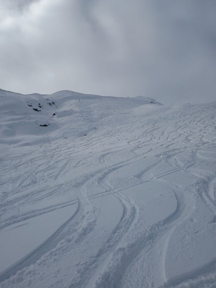 Frische Pulver von oben bis unten. Aber Achtung, es gibt schon versteckte Steine. Aber für diesen Winter nun ganz gute Verhältnisse... Viele Leute, schon alles zerpflügt :)