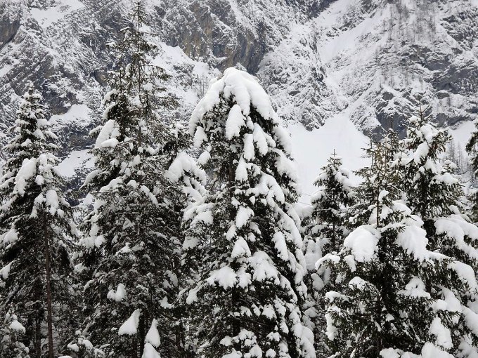 sonniger Wintertag zu Beginn. Überraschend war der Neuschnee von 30-50cm.