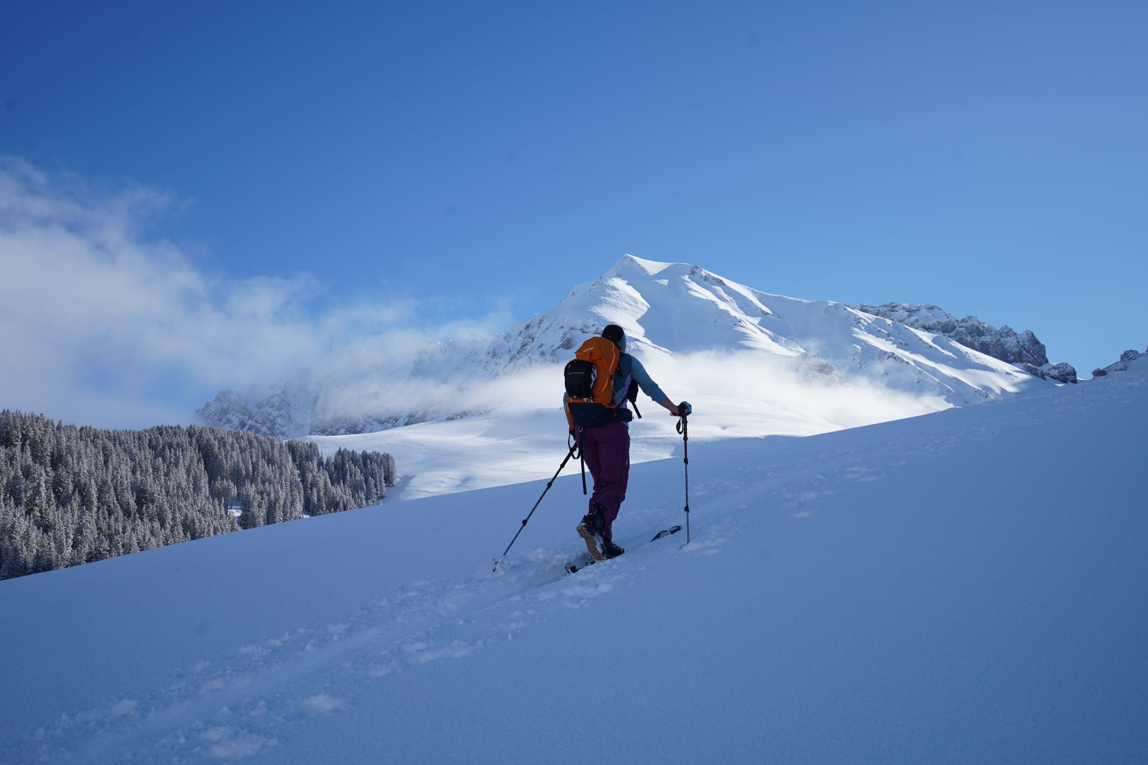 Ausgezeichnete Tour! Unten wenig, aber genug Schnee, wunderschöne Winterverhältnisse. Es hat etwa 10-15 cm Neuschnee. Gute Spur bis zum Gipfel. Die letzten 5 min zum Gipfel sind etwas steinig.