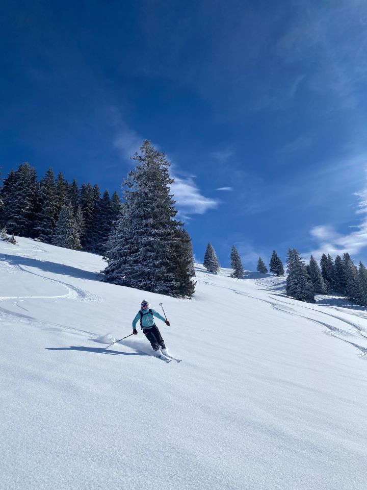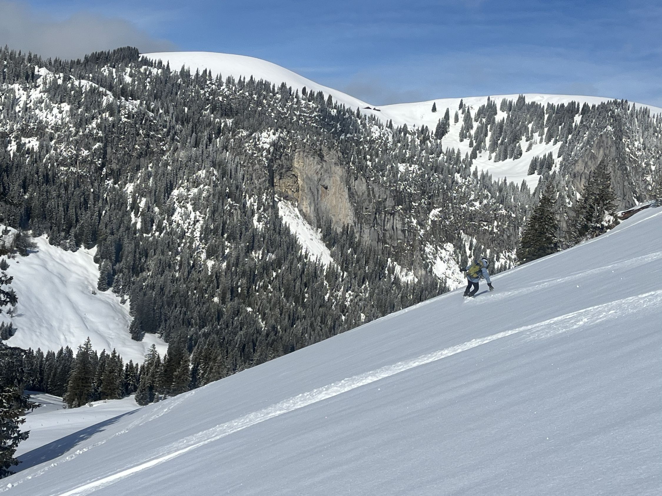 Phantastischer Tag Dank neuem leichtem Pulver - vor allem die oberen Hänge. Viel los hatte dann aber noch Platz für eigene Spuren . Ganz unten schon etwas Sulz in der Sonne drum auch schön zu fahren