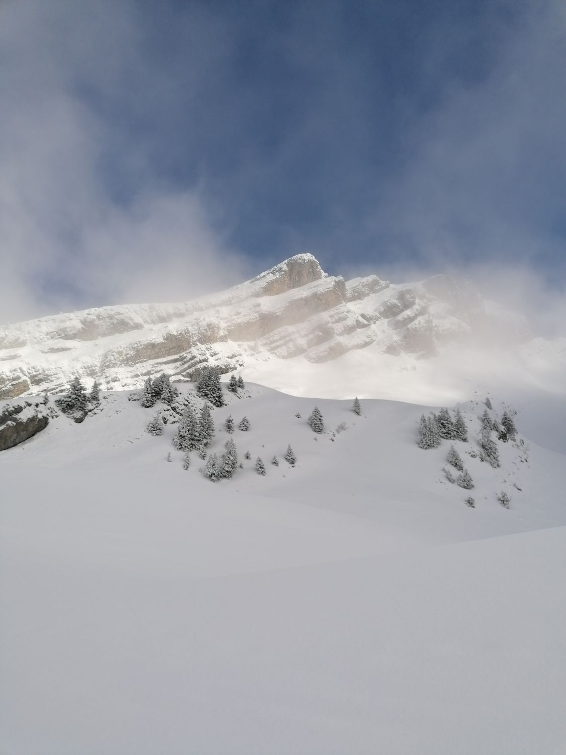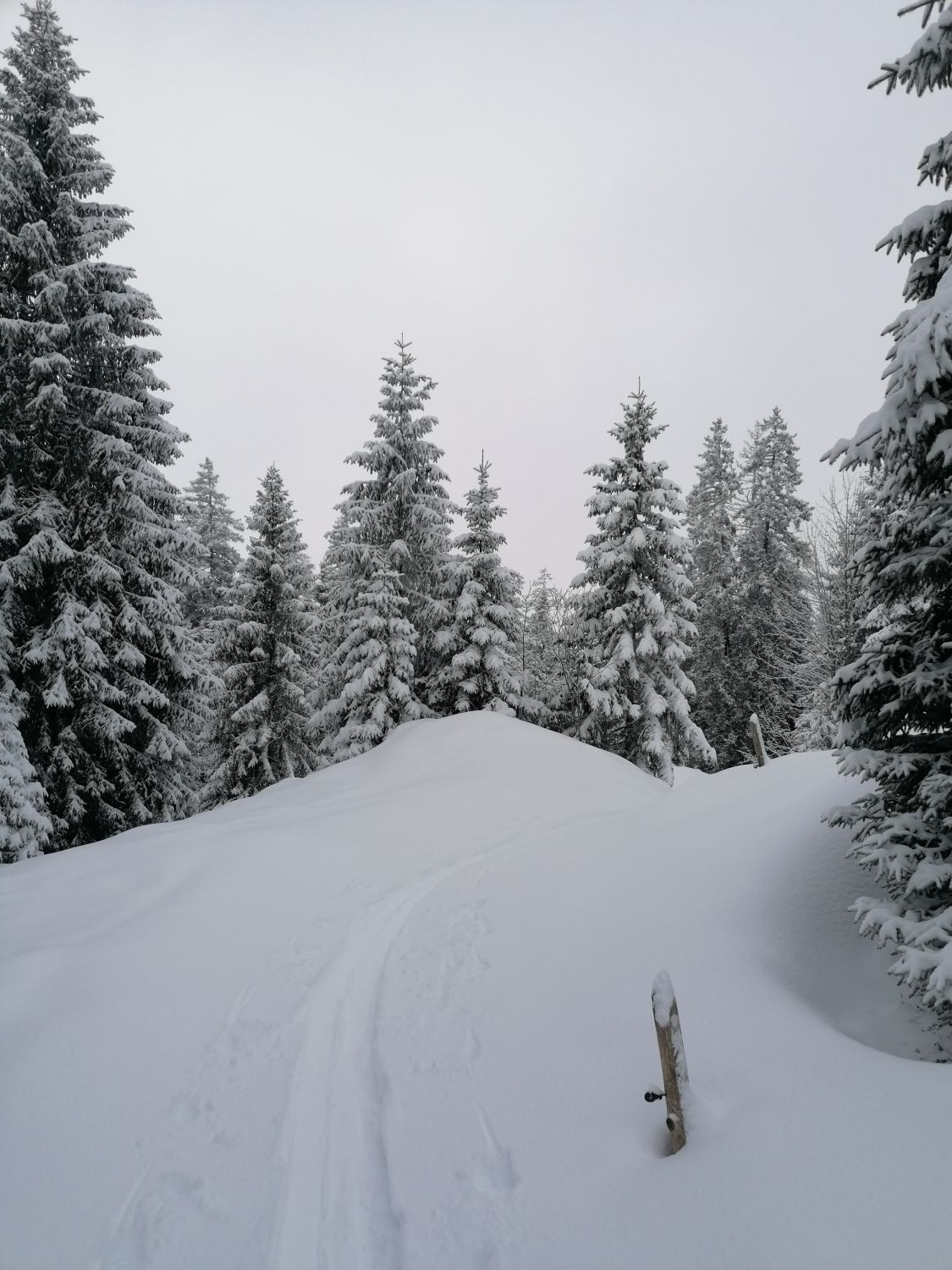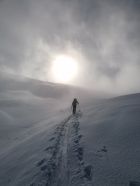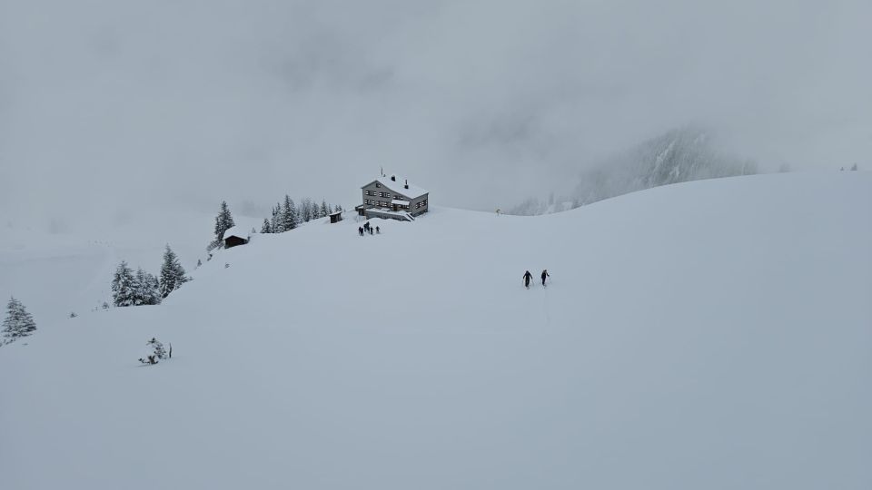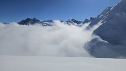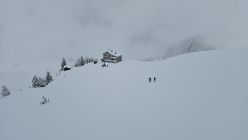 Frischer Pulver Schnee. Es hatte Nebel bis zum Brisenhaus darum sind wir zum Kaffee eingekehrt. Danach Bewökungsauflockerung und schöne Spur zum Gipfel.