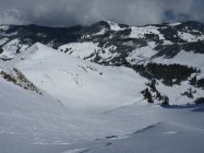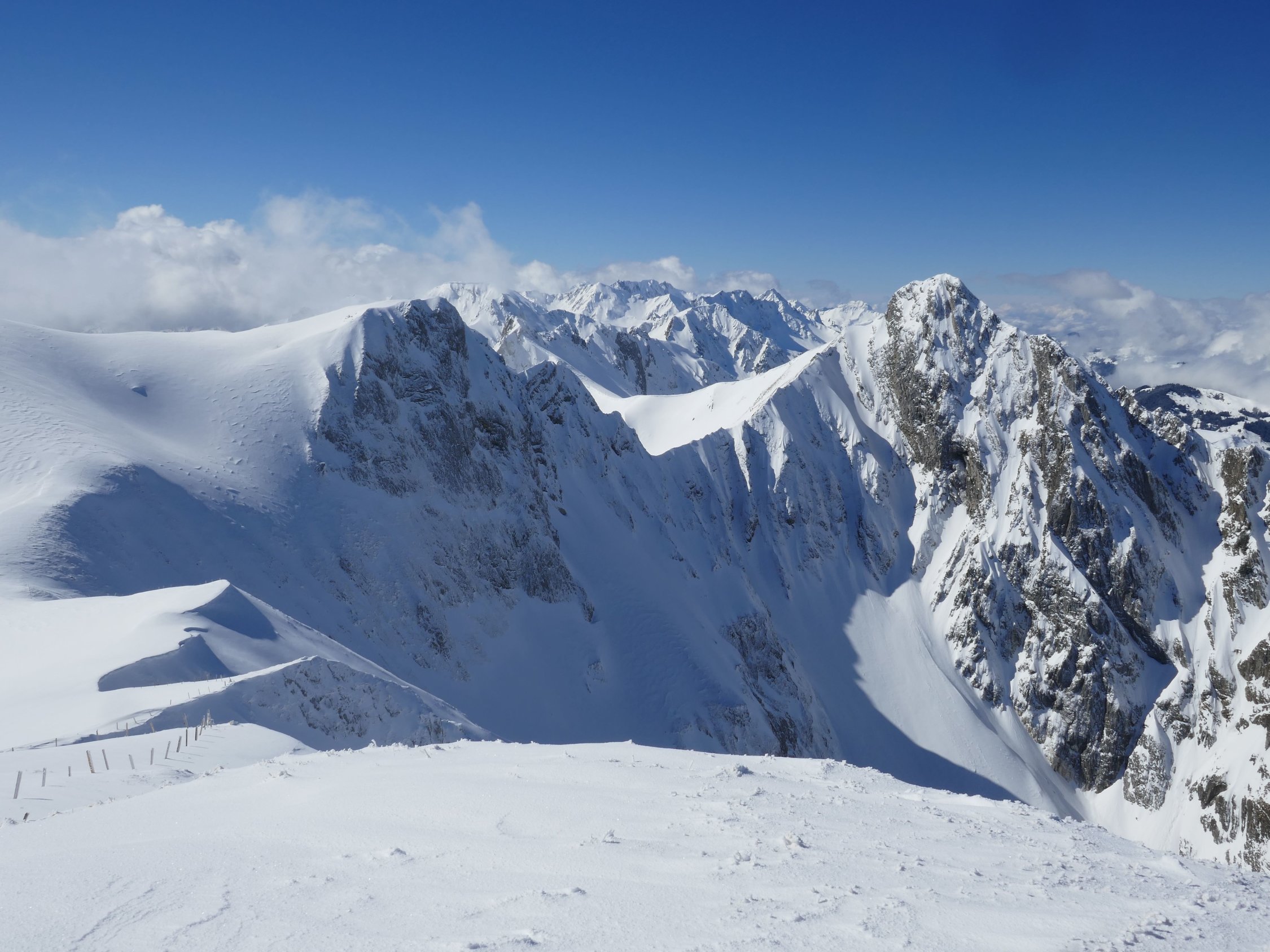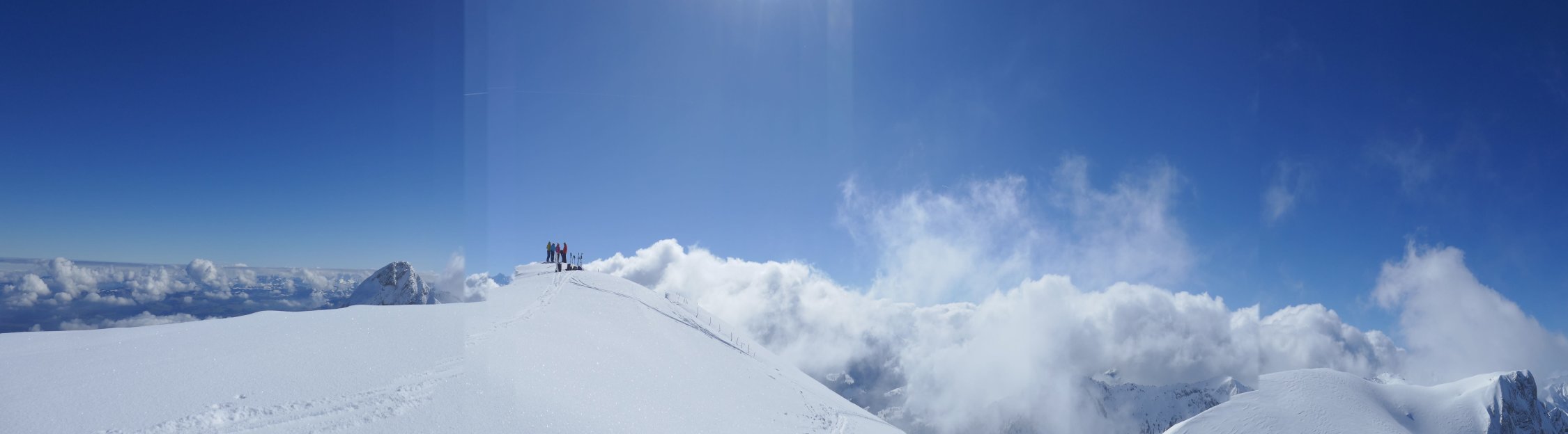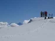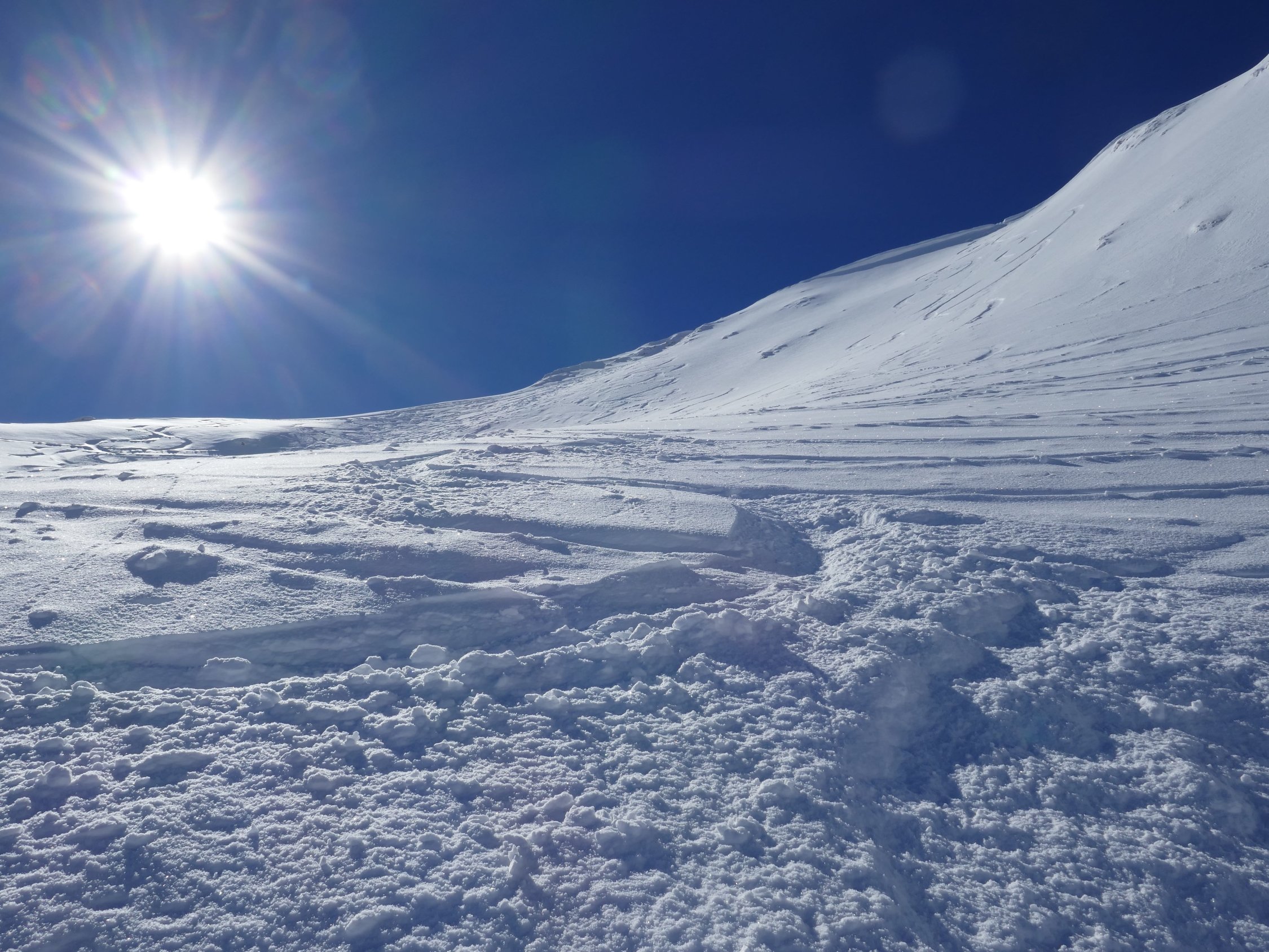 gute Verhältnisse Bürgle Aufstieg via Morgetenpass (gute Spur, grosse Wächten), Abfahrt Nordflanke und Aufstieg Bire (Pulverschnee)