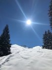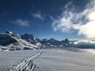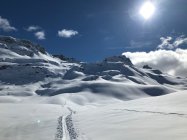 Nachmittagstour, daher Start um 13:30 im Sali. Unten ca. 10cm Pulver auf mässig fester Unterlage, schon etwas schwer. Gegen oben rasch auf ca. 30-40cm lockerer Pulver auf fester Unterlage ansteigend. Nur in den flachen Passagen leicht angefeuchtet. Etwas Wolken im Osten, sonst perfekte Rundsicht vom Gipfel.