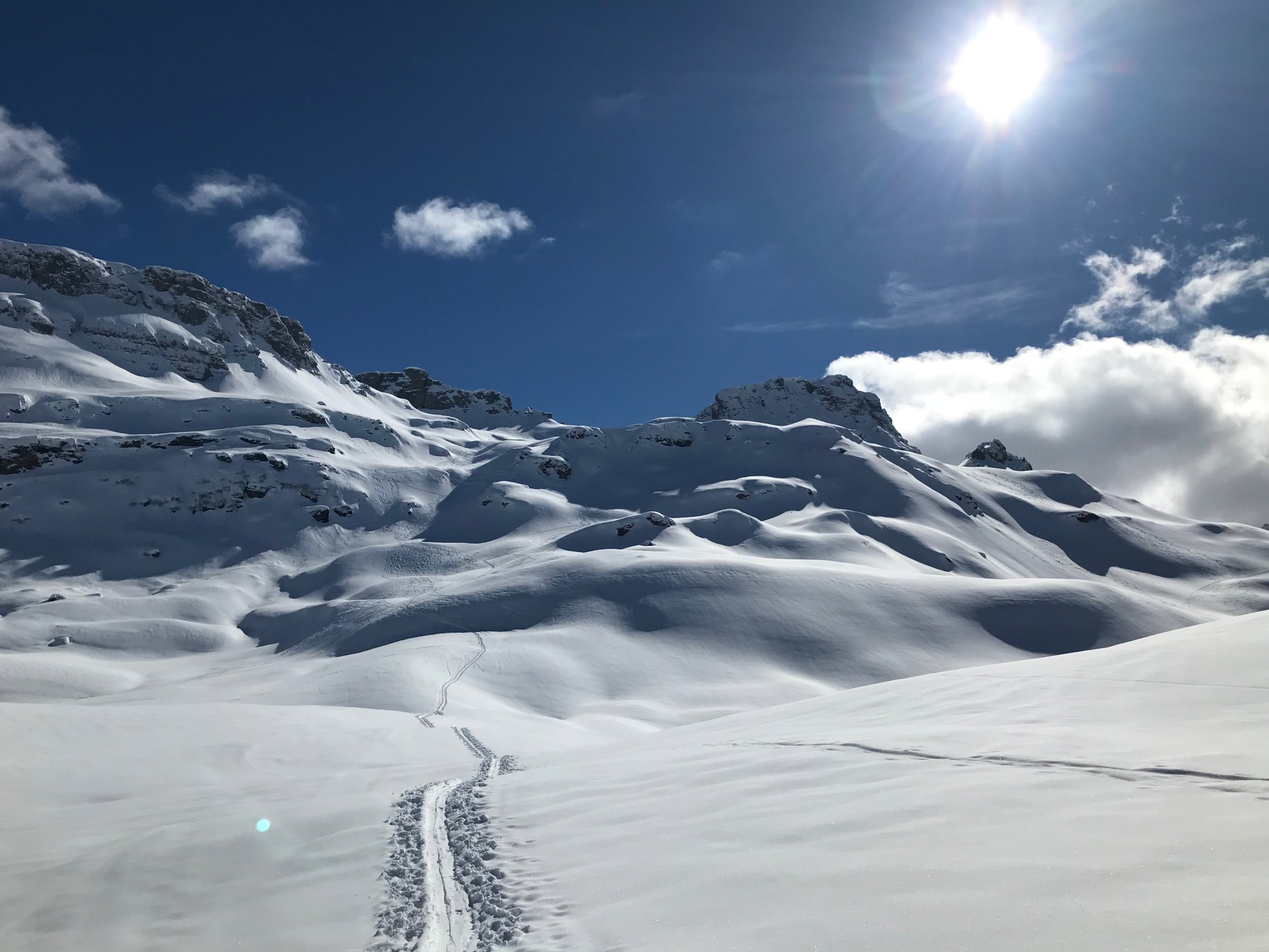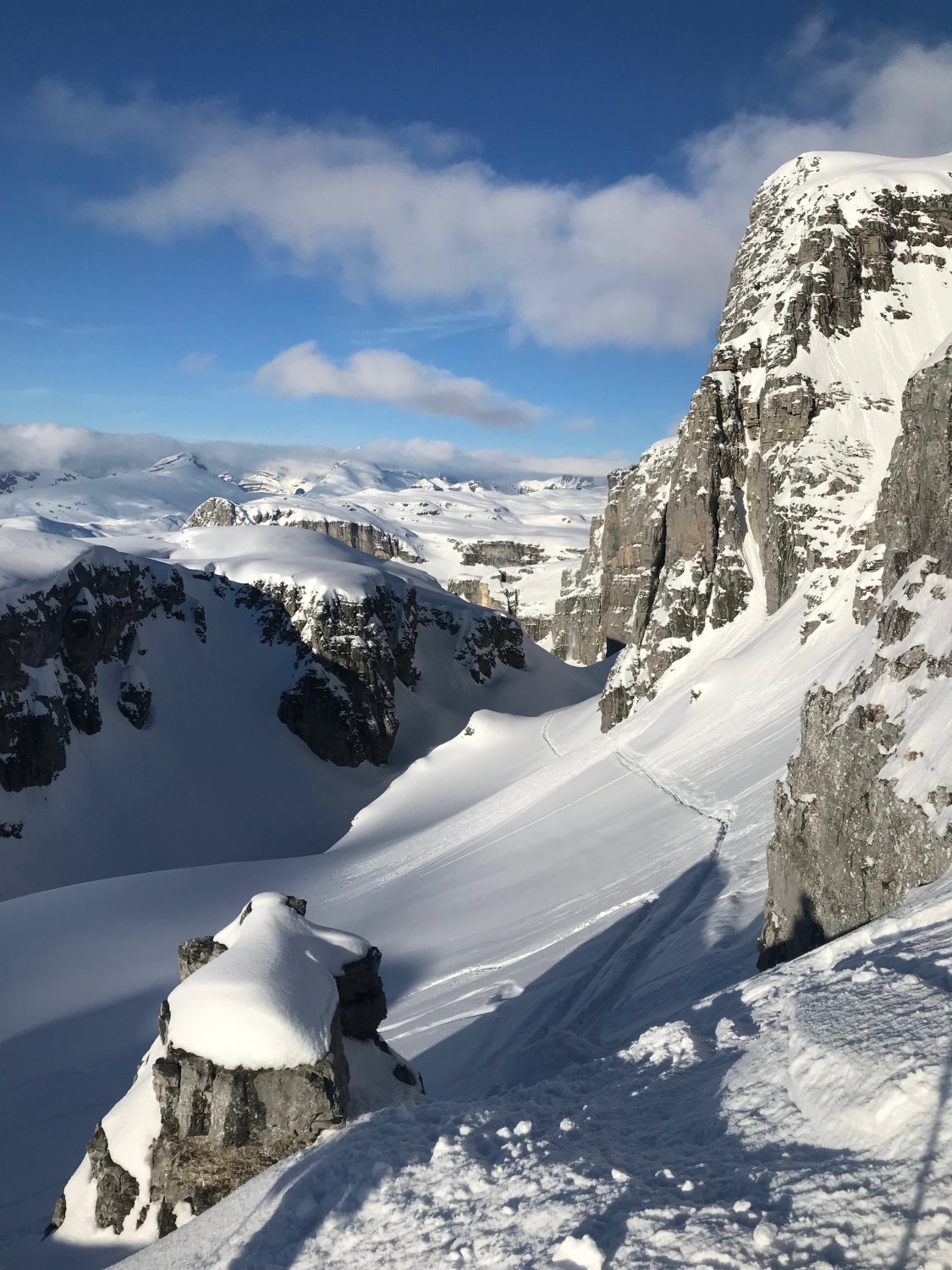 Nord-Abfahrt via Schuechälen nach Gwalpeten: Ein Traum von ca. 40-50cm perfekt gebundenem, luftigem Pulver. Ein paar ältere und neue Abfahrtsspuren, die jedoch nicht störten. Ab ca. 1600m schwerer Pulver und dann spätestens ab der Forststrasse übler Bruchharsch.