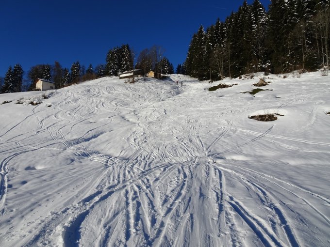 Im Abstieg dann viel Platz neben den Spuren um im Telemark-Schritt abzurutschen.