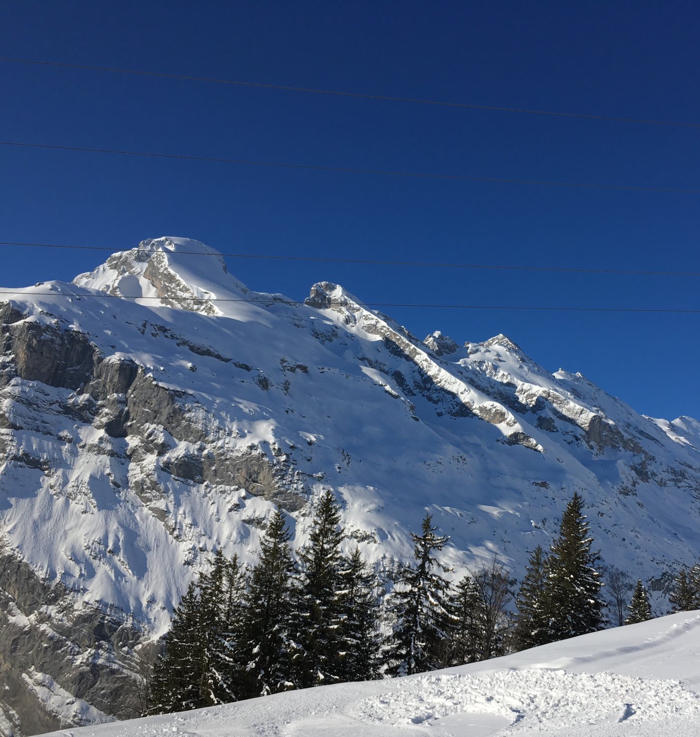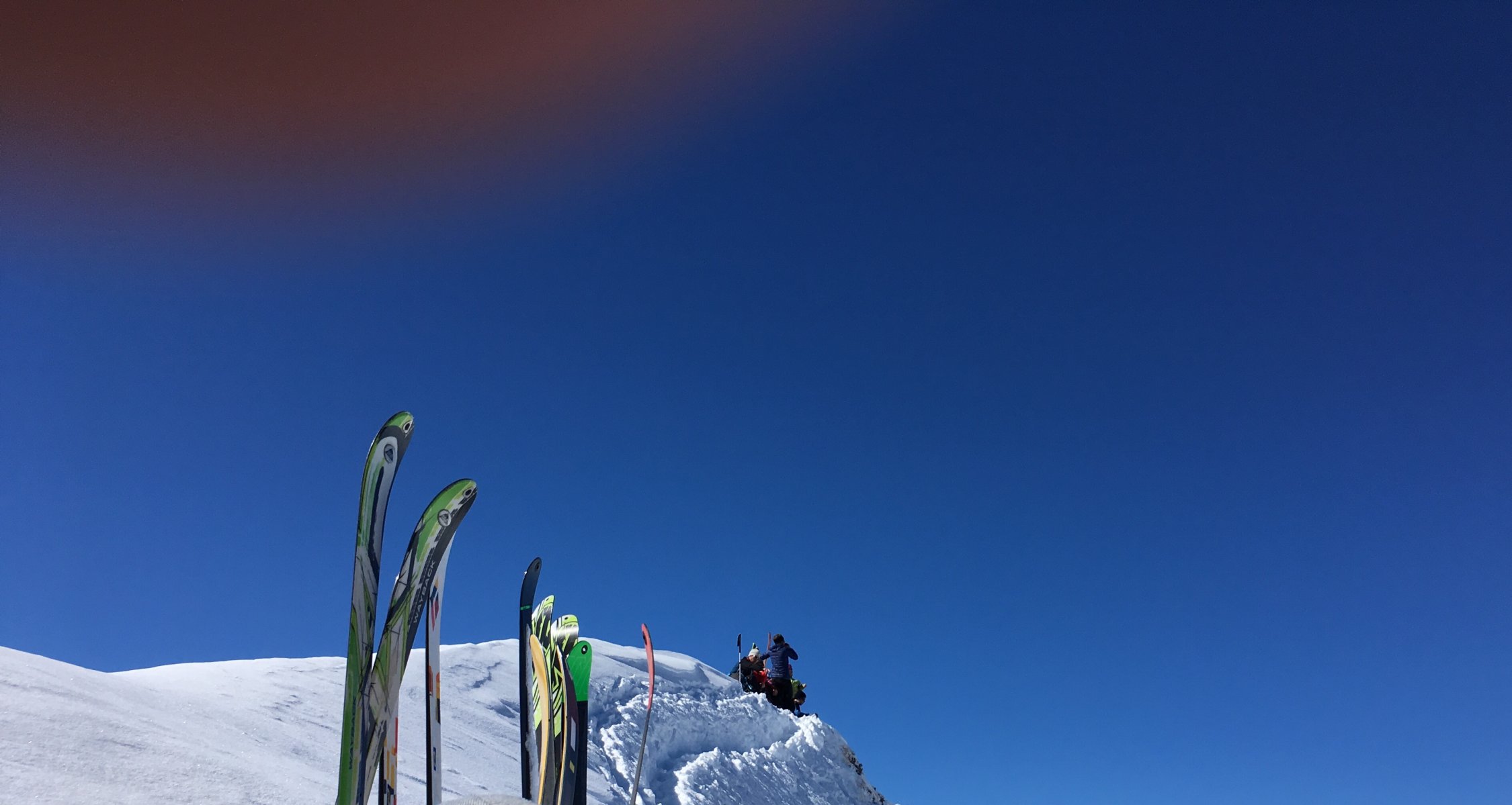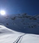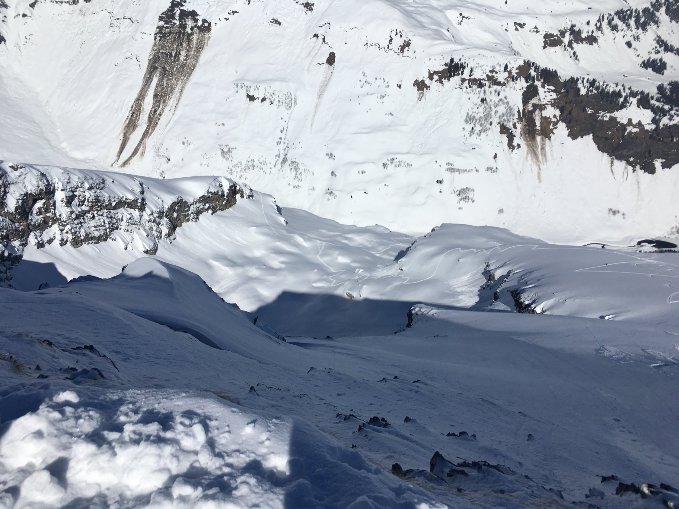 The Place to be:-). Perfekte Verhältnisse, Pow von unten bis oben, top angelegte Spur (Danke den Spurern!), bis kurz vor Gipfel ohne Harscheisen.