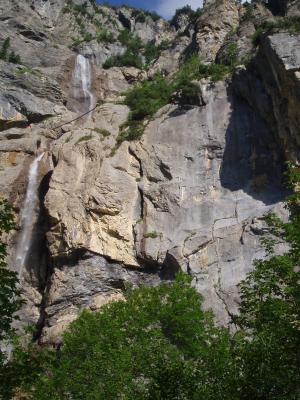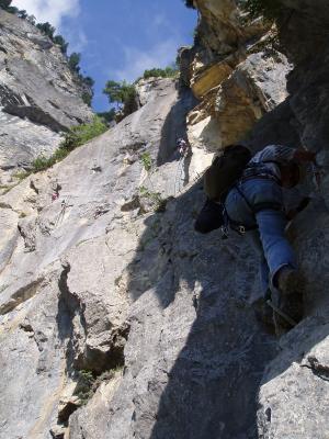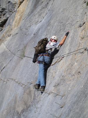 Fantastischer, luftiger Klettersteig mit 2-facher Ueberquerung des Allmibachs auf einem Nepalsteg und einer einzigartigen, sich um 180°-drehenden Leiter.