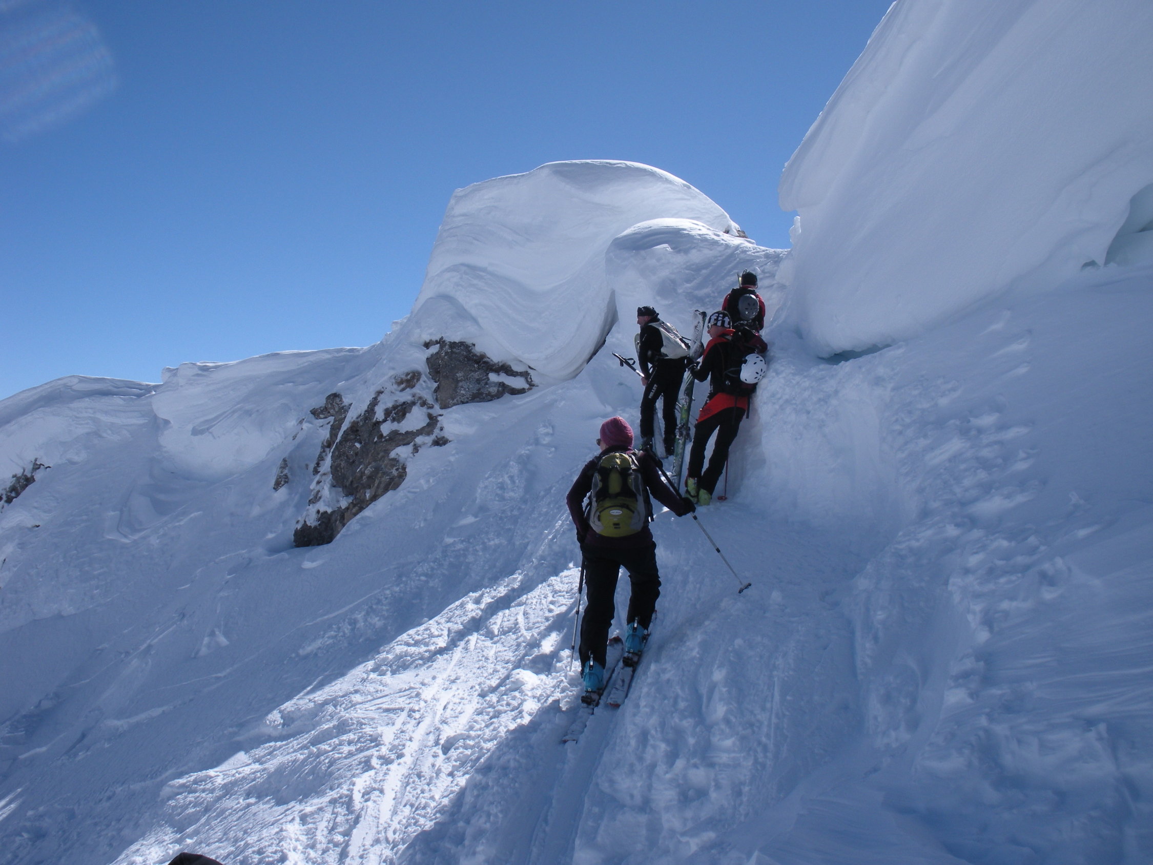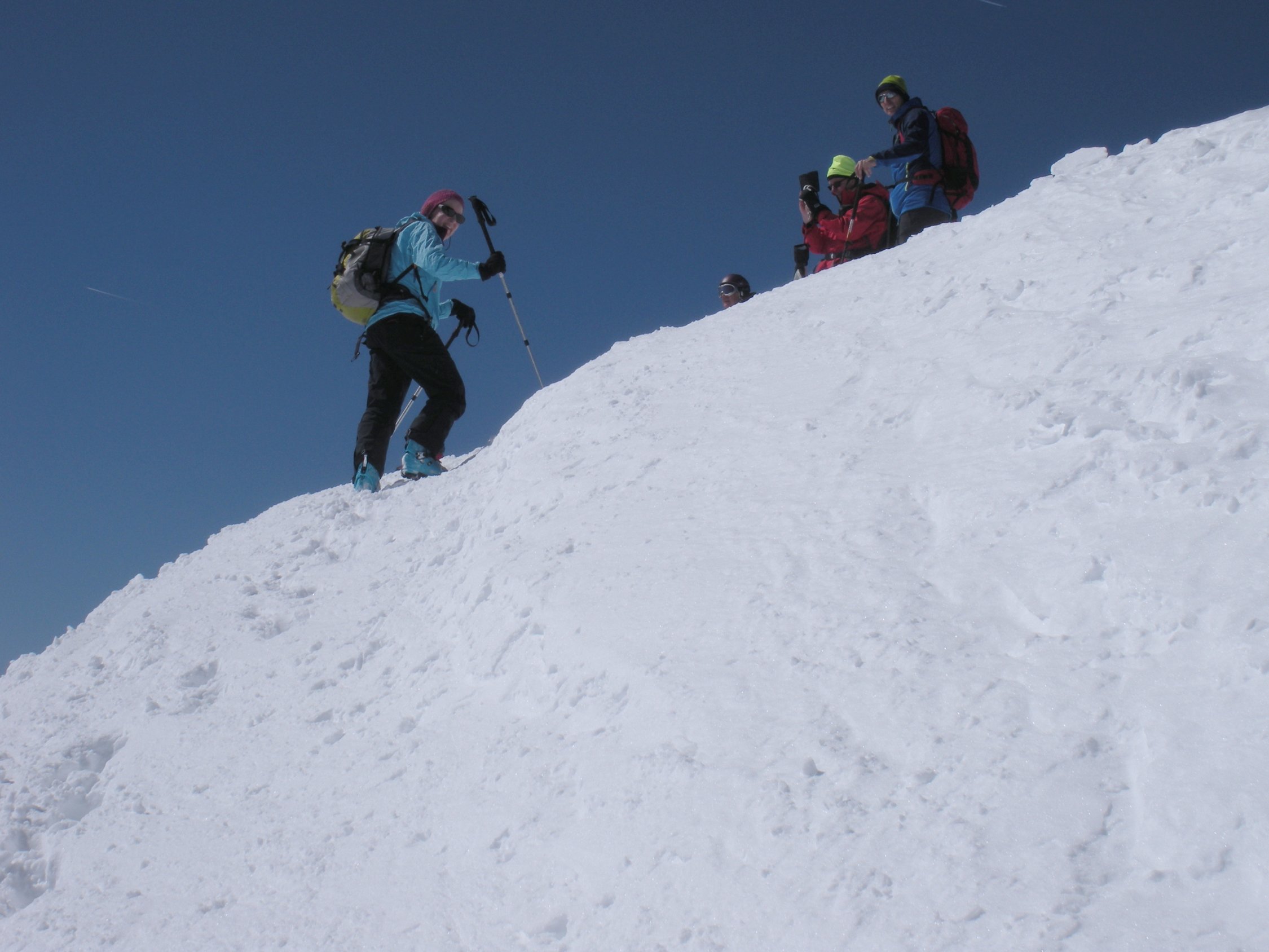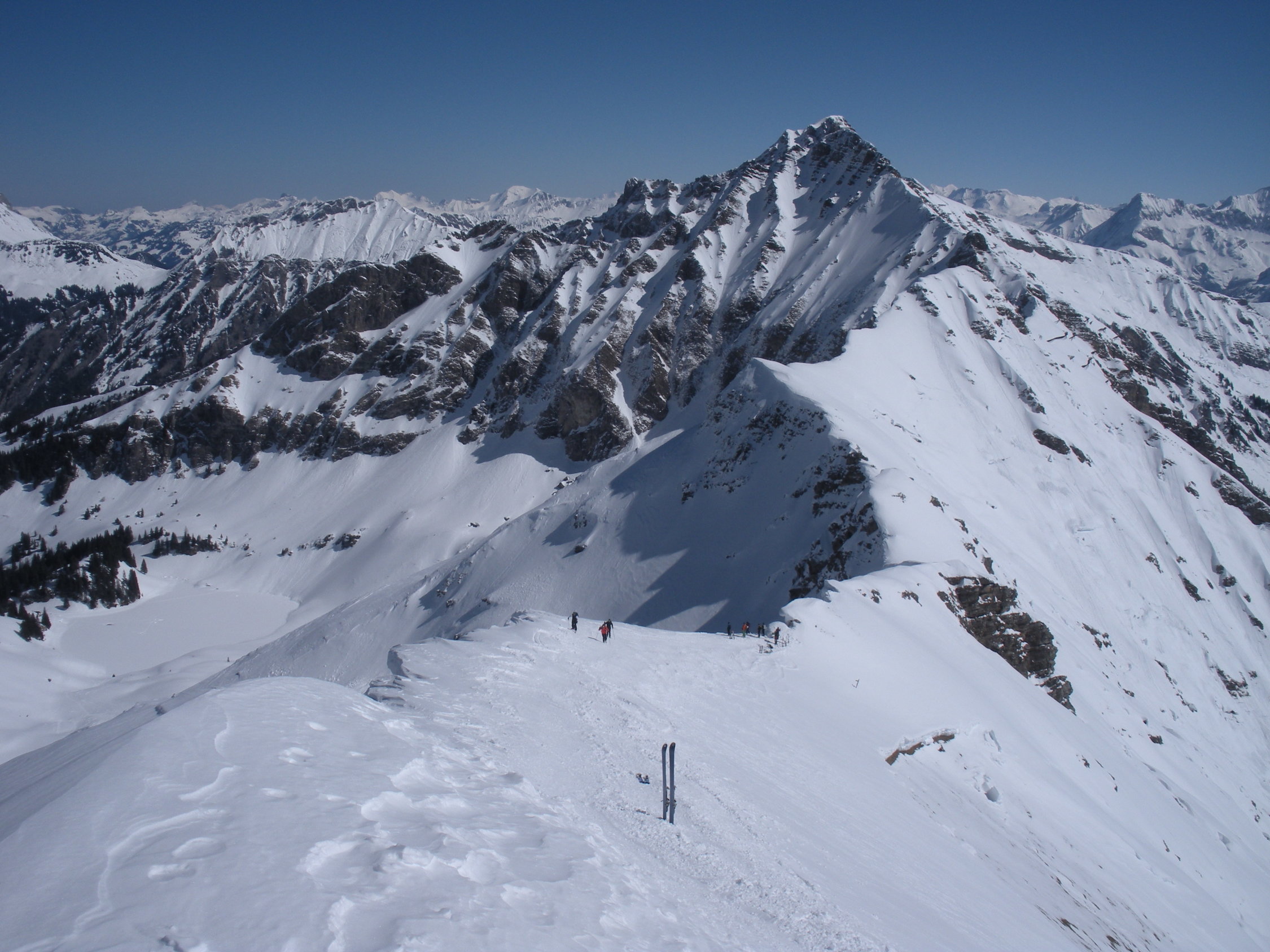 Viel besuchter sehr lohnender Gipfel. Dementsprechend teilweise pistenähnliche Verhältnisse in der Abfahrt. Aufstieg: durchgehend gute Spur. Durchstieg durch Wächte geschaufelt (Tragpassage)