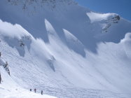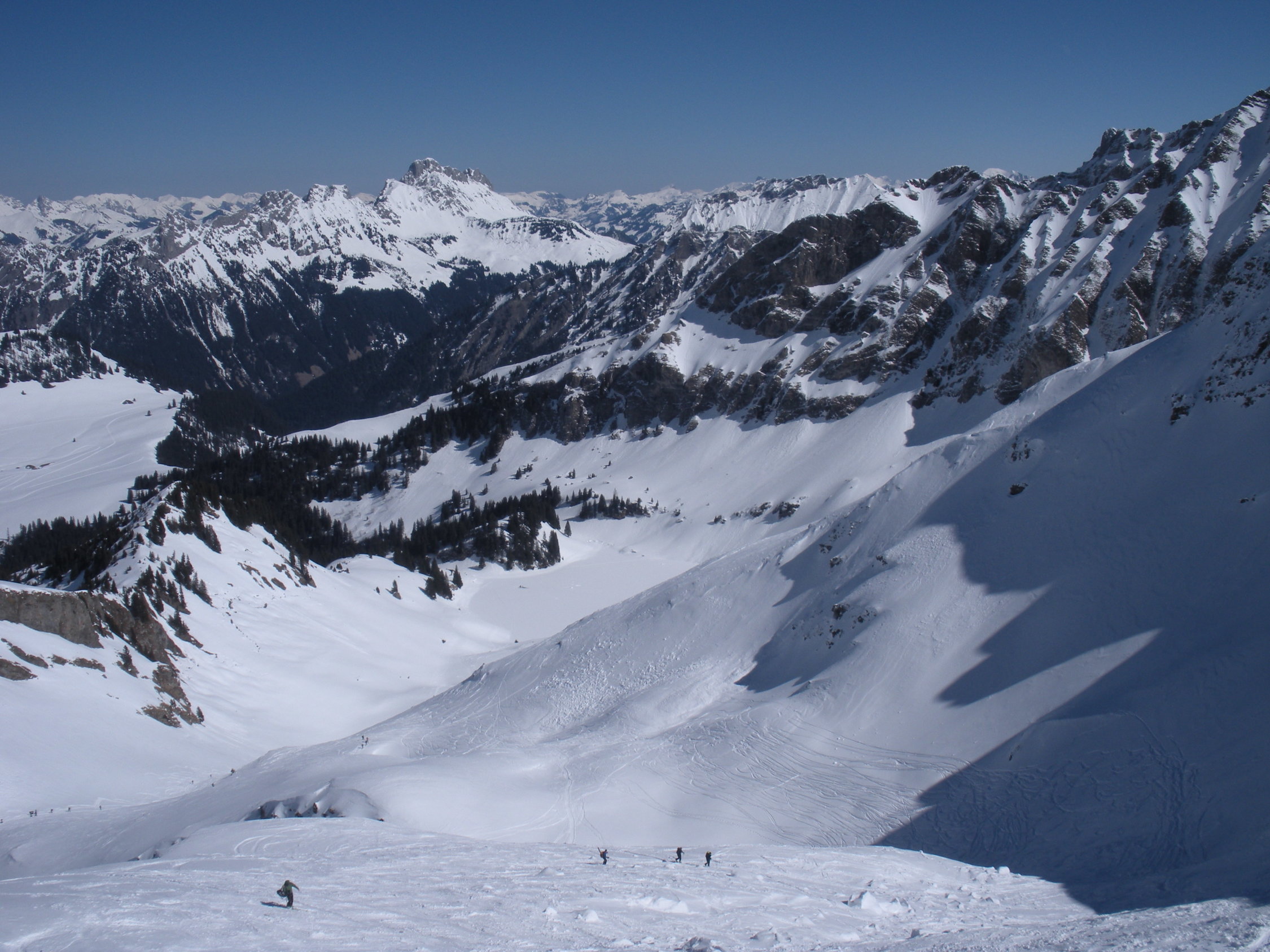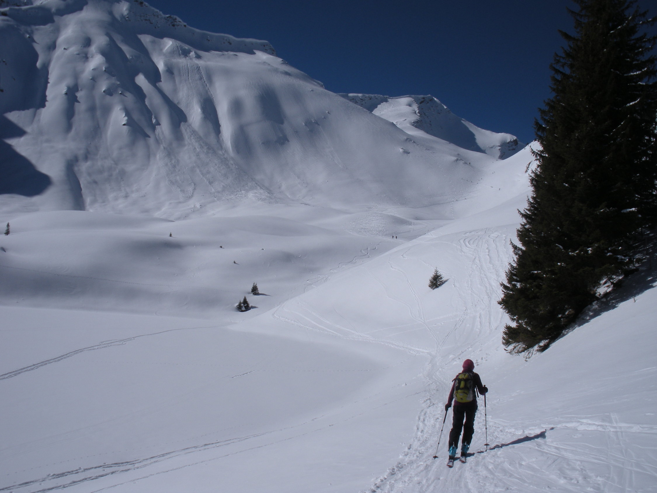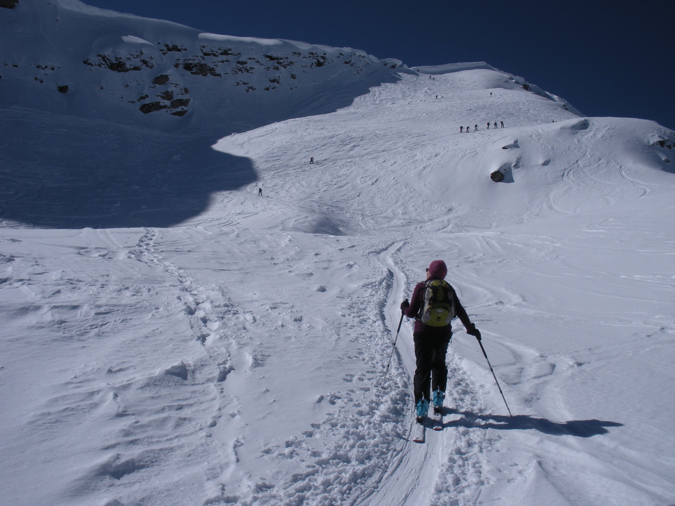 Viel besuchter sehr lohnender Gipfel. Dementsprechend teilweise pistenähnliche Verhältnisse in der Abfahrt. Aufstieg: durchgehend gute Spur. Durchstieg durch Wächte geschaufelt (Tragpassage)