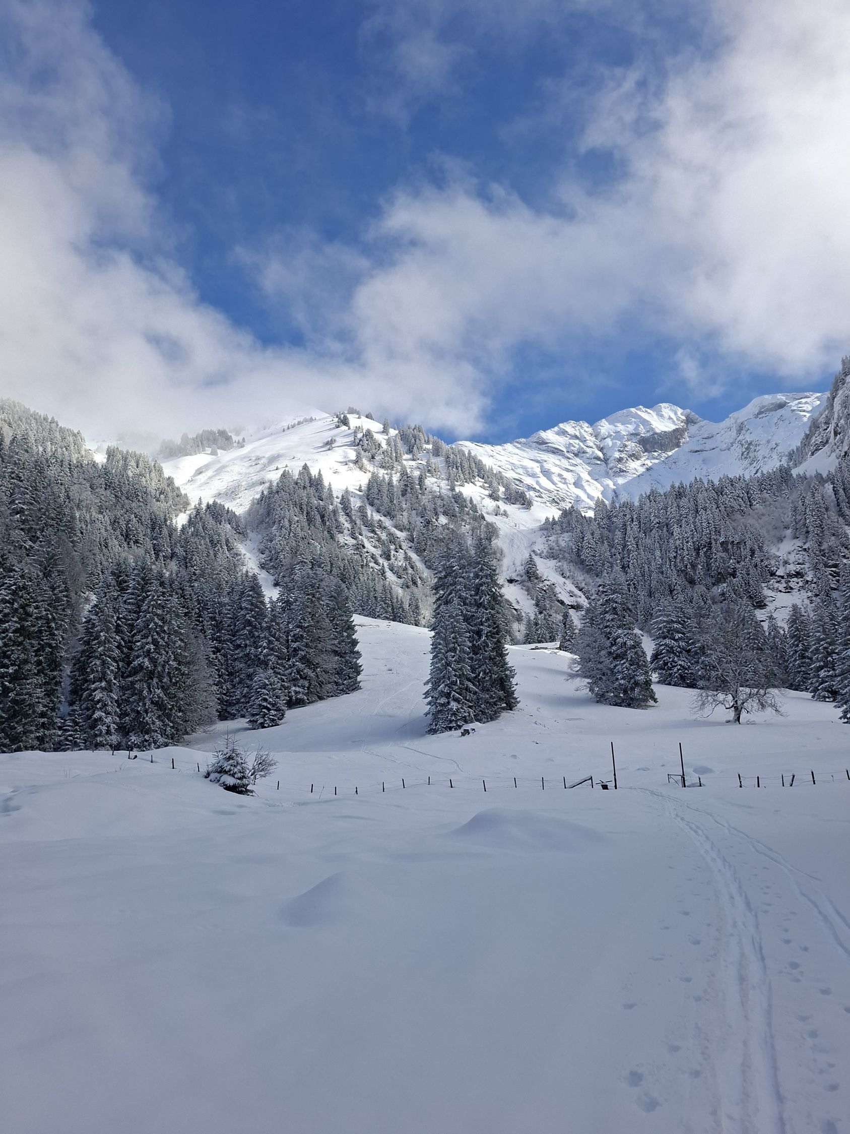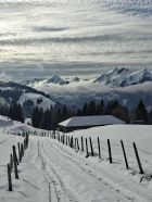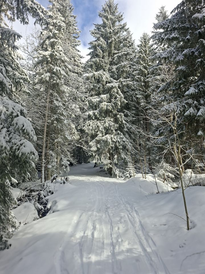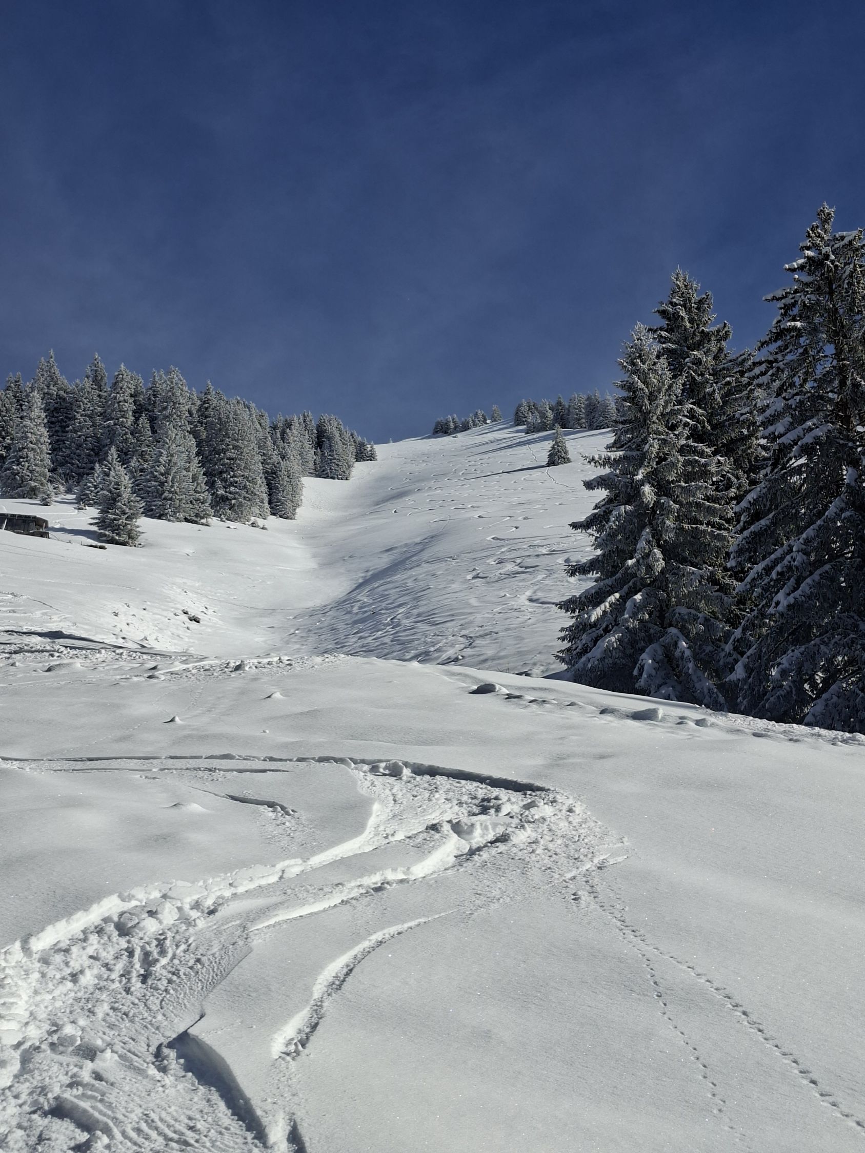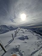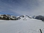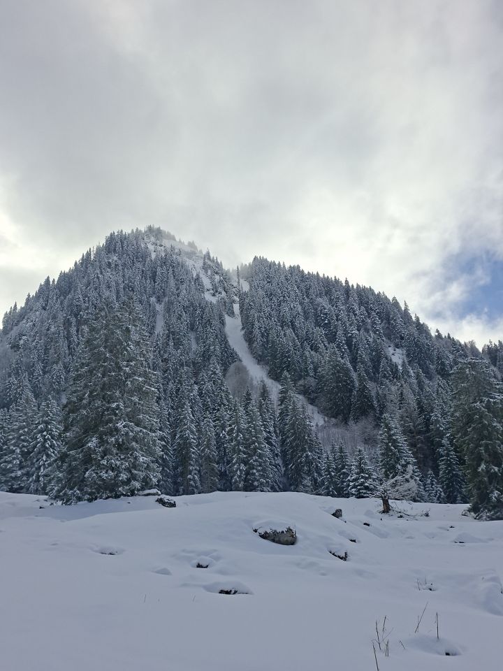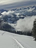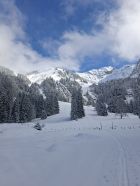 Start 12.00 Uhr Kapelle.Hat gerade Aufgemacht.knapp Schnee durch Wald bis Baudes. Ab da sehr gute Unterlage mit 10,oben - 20 cm. Pulver schön an Sonne und Frühlingshaft.Da seltsamerweise erst 4 vor mir(merci top Spur)noch Platz für eigene Abfahrt.