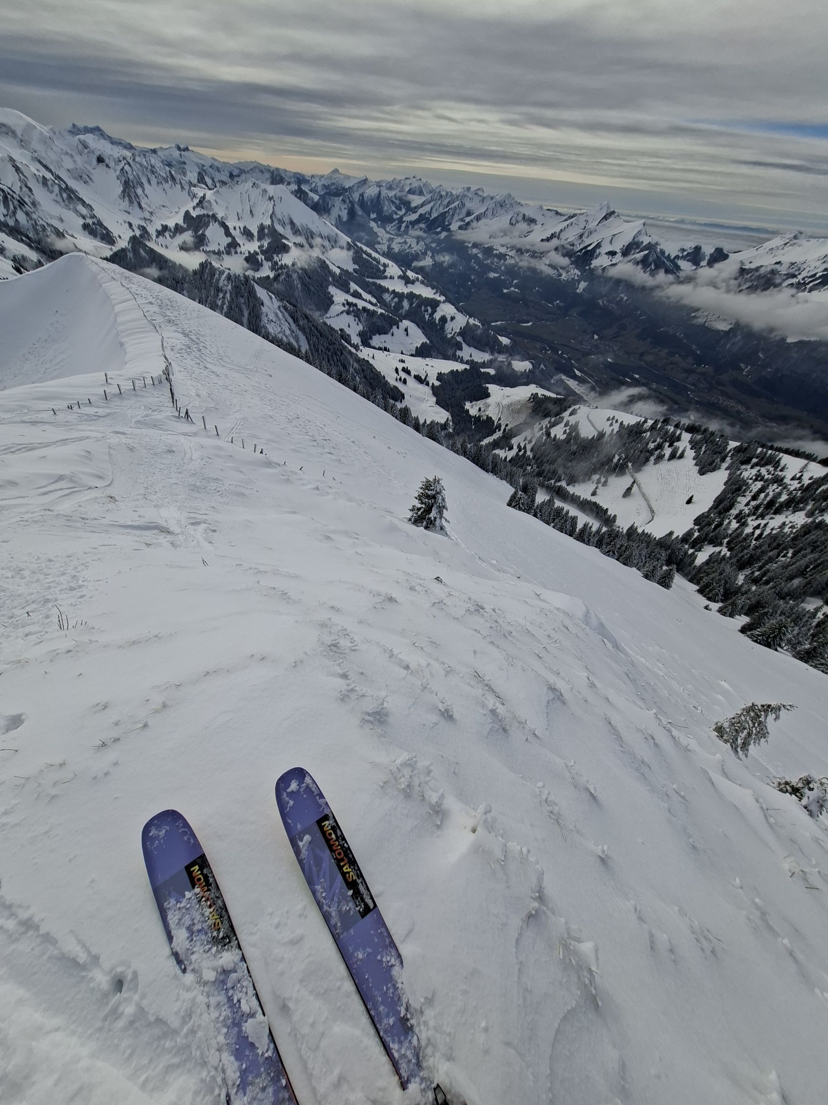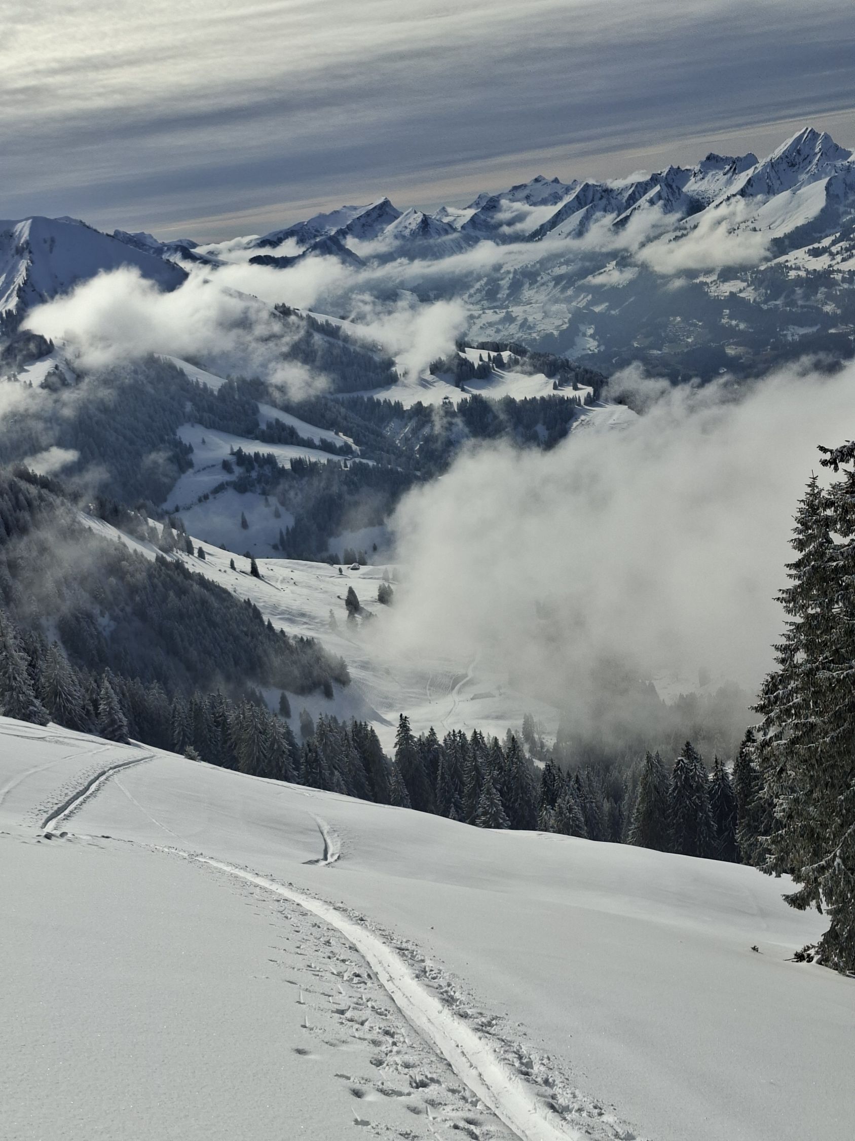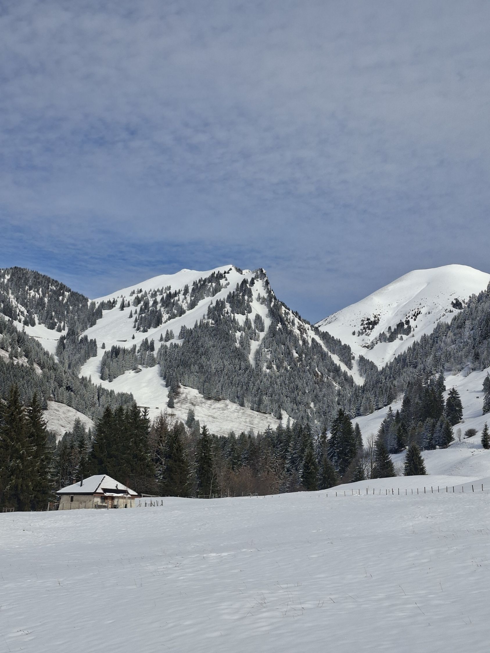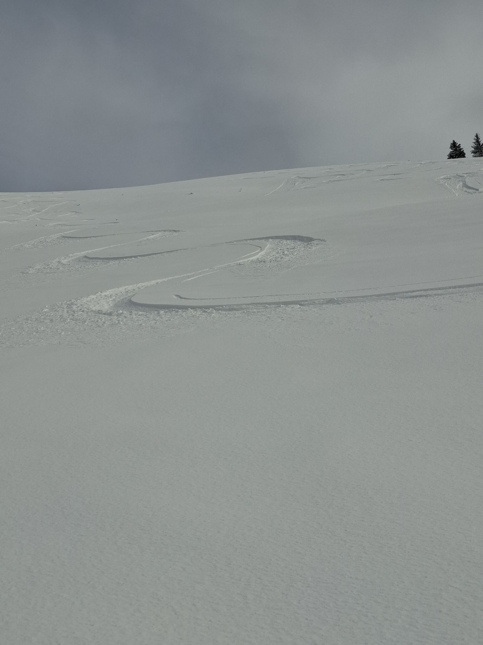 Start 12.00 Uhr Kapelle.Hat gerade Aufgemacht.knapp Schnee durch Wald bis Baudes. Ab da sehr gute Unterlage mit 10,oben - 20 cm. Pulver schön an Sonne und Frühlingshaft.Da seltsamerweise erst 4 vor mir(merci top Spur)noch Platz für eigene Abfahrt.