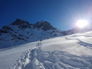 Start der Tour am 7.20 Uhr in St.Jakob bei -4°, die Ski konnten sofort montiert werden, viel Pulverschnee auf der ganzen Route, heute konnte bis zum Gipfel mit den Skis hochgestiegen werden, nur bei einer kurzen Passage gabs Steinkontakt vom Gipfelhang, sonst Topverhätnisse vorgefunden auf der ganzen Tour.