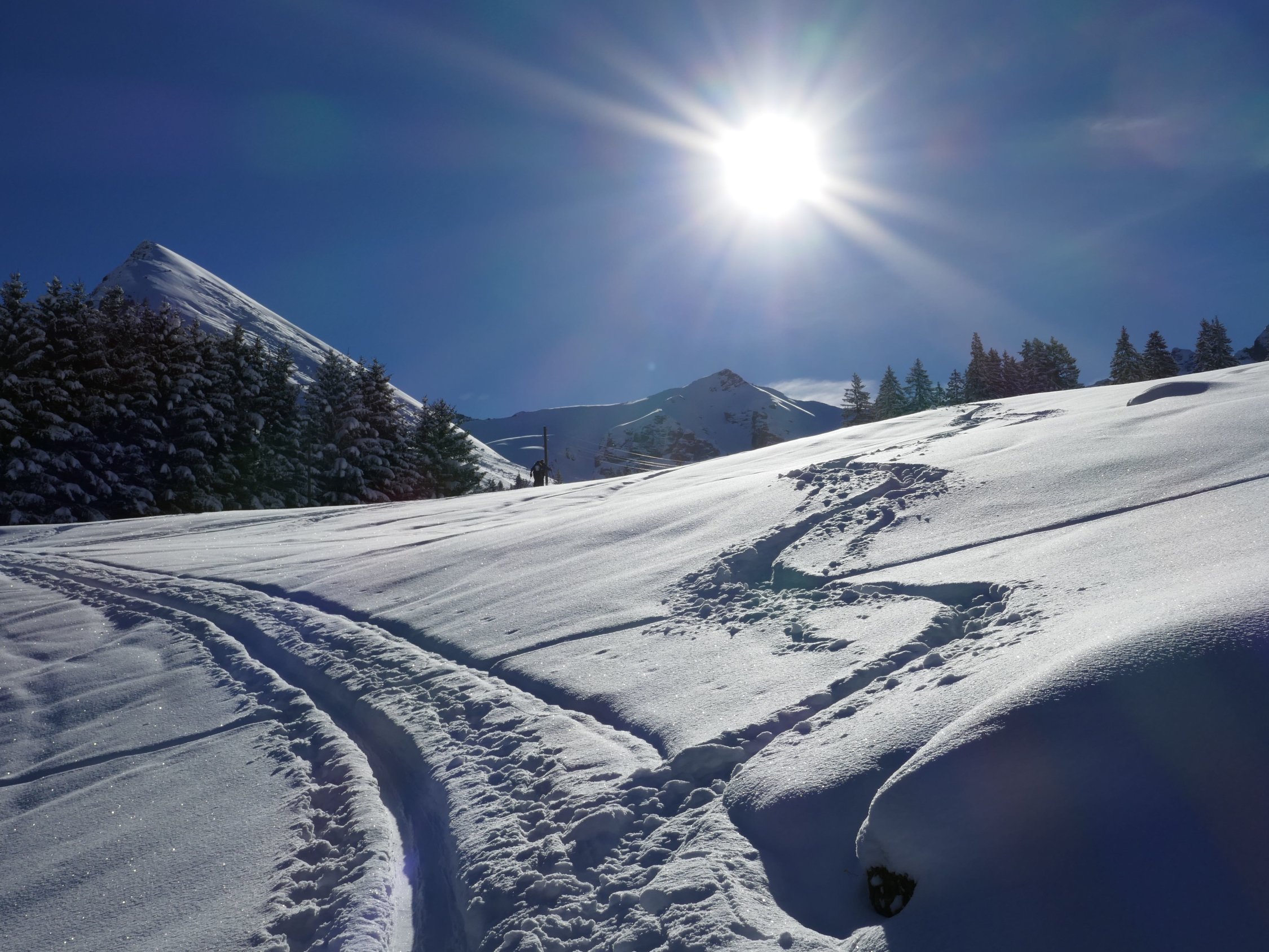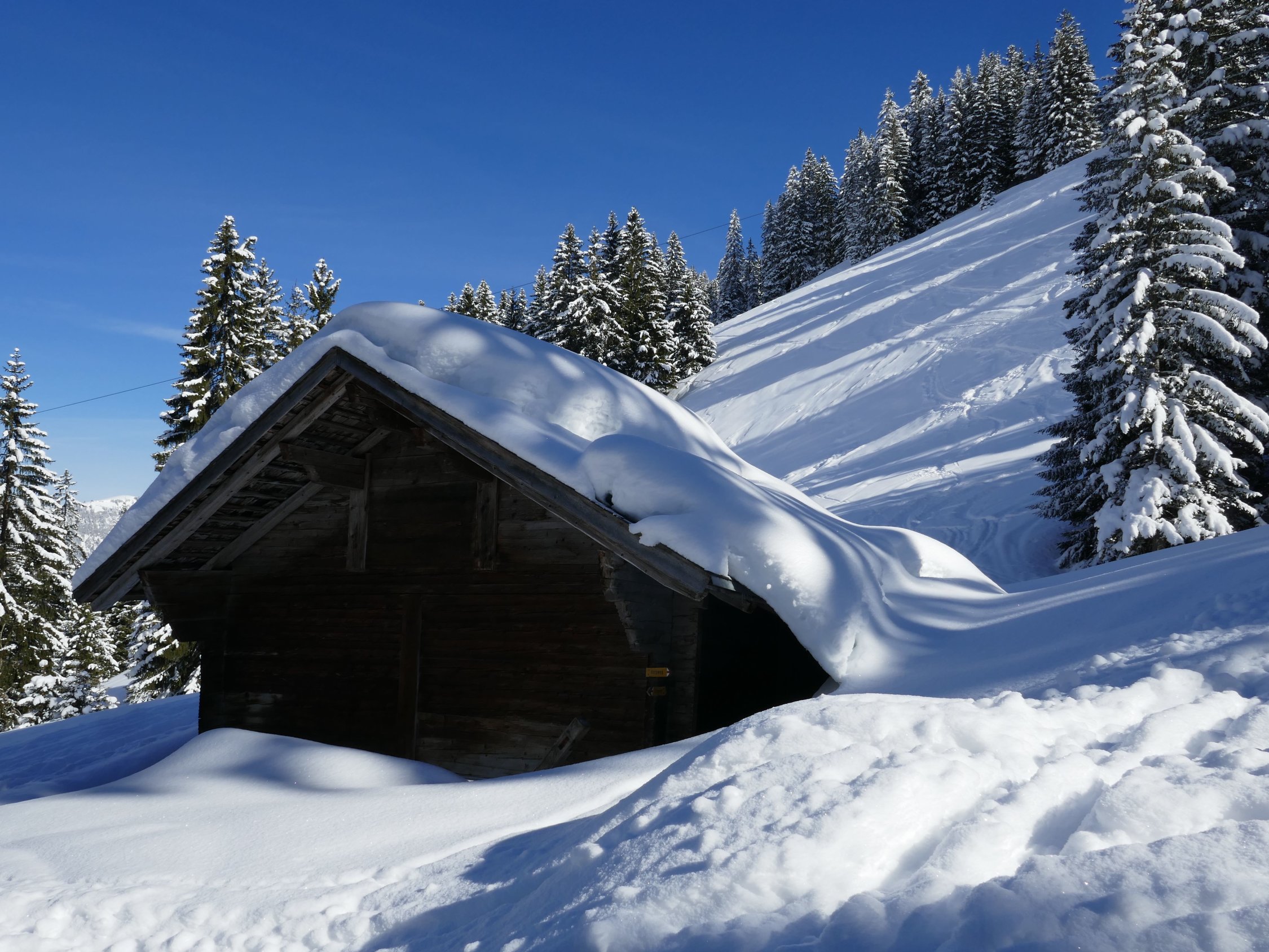 frischer Pulverschnee auf fester Unterlage,