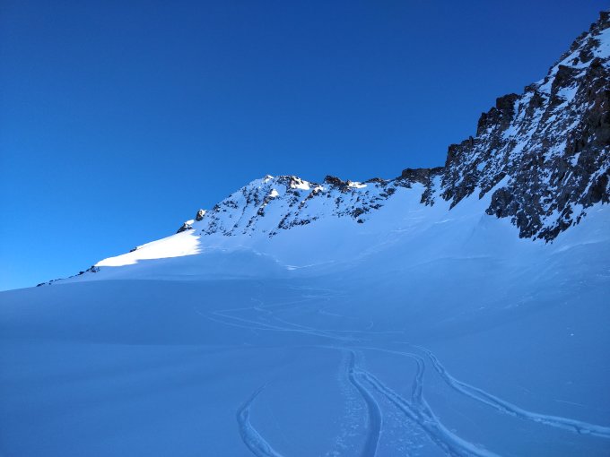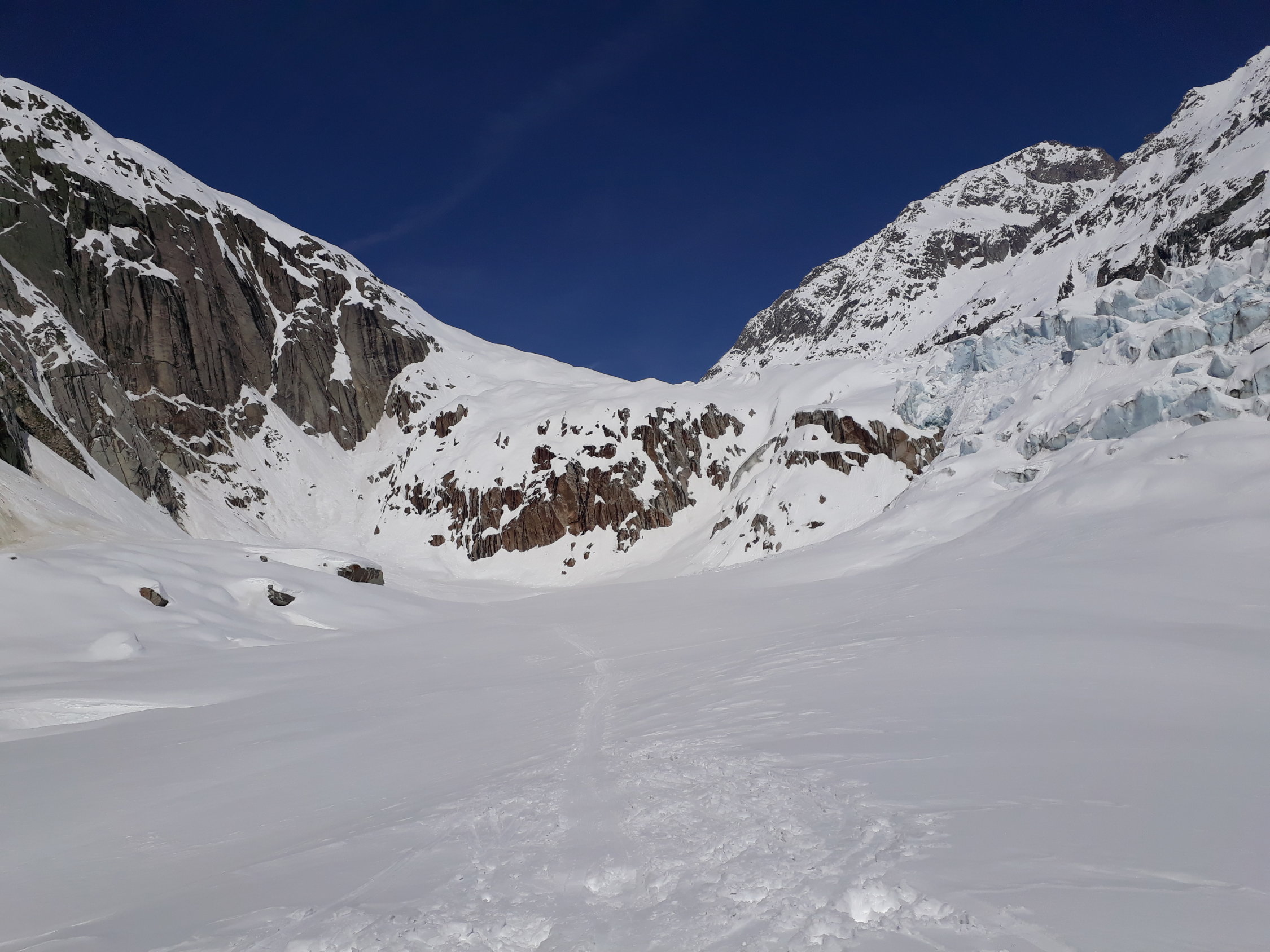 Grundsätzlich: Die Gletscher im Gebiet sind sehr gut eingeschneit. Doch die Flanken und Grate weisen noch blanke Stellen auf, und der vorhandene Schnee ist erst schlecht gesetzt.