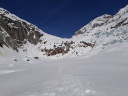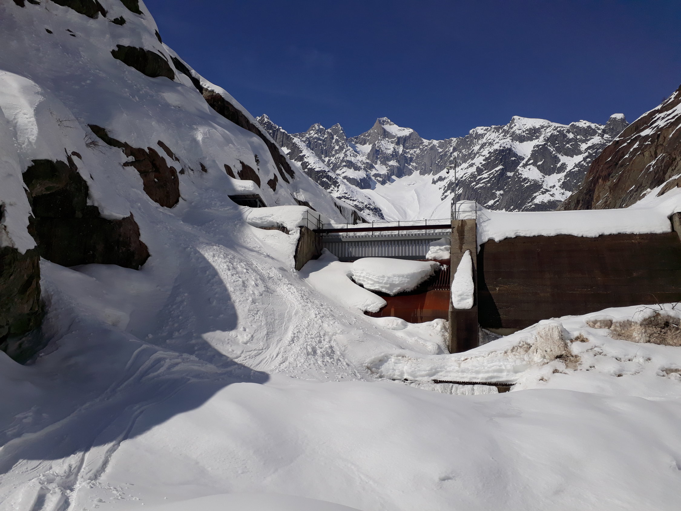 Aufstieg zum Hinter Fiescherhorn ab dem Sattel problemlos, die Abfahrt den Fieschergletscher hinunter bis nach Fieschertal ebenfalls. Sogar das Wehr ist gut eingeschneit, sodass es einfach abgefahren werden kann.