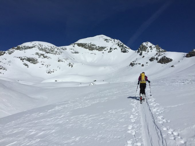 Die Tour ist frisch eingespurt. Am Südgrat sind Eispickel und Steigeisen trotz guter Trittschneeverhältnisse hilfreich. In der Abfahrt zum Teil Pulver auf tragender Unterlage - ab Höhe Stallerberg bis Juf schon Butterfirn.