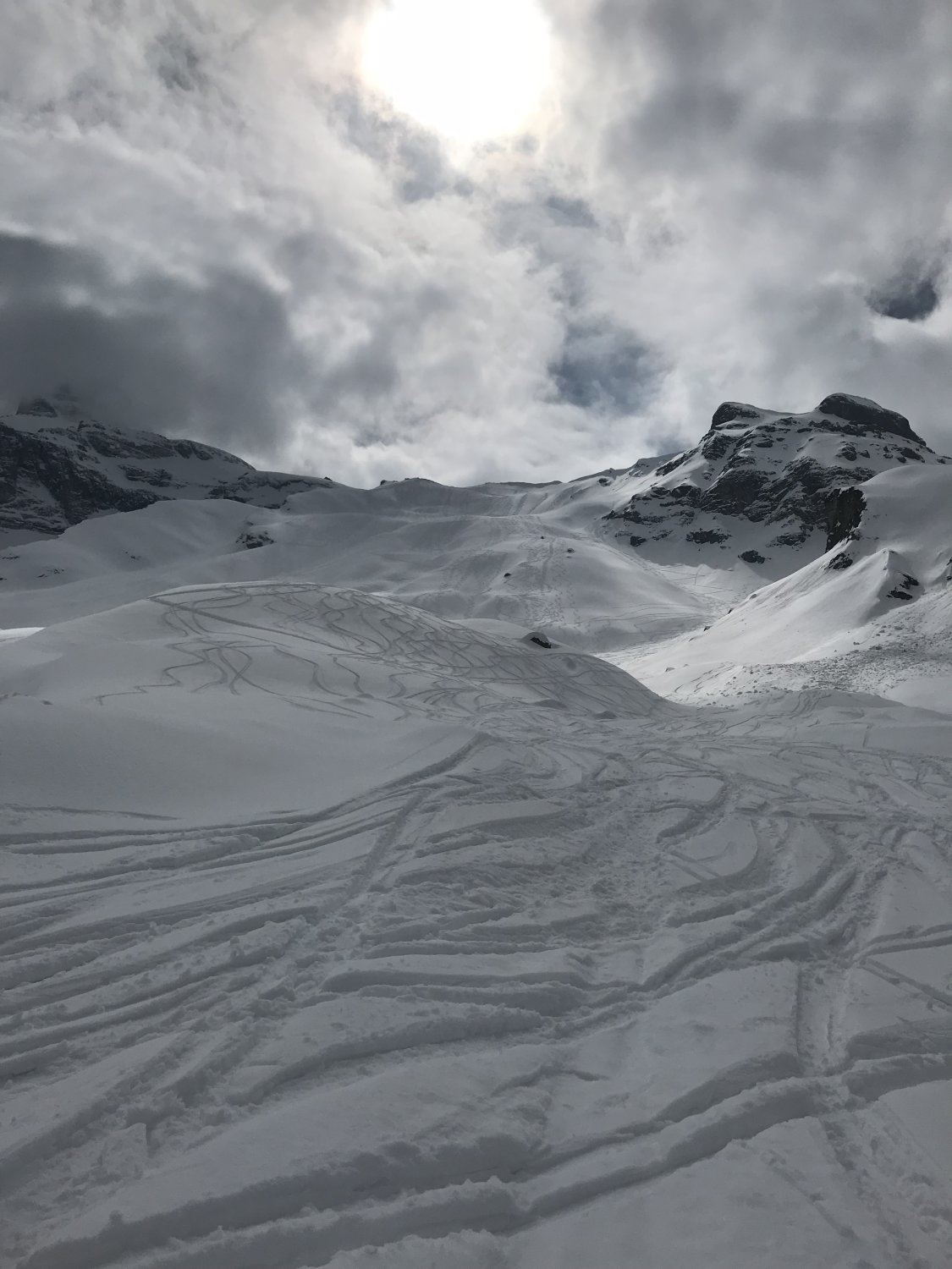 Gute Aufstiegsspur, Strasse nach Griessalp Schneebedeckt und gut begehbar.der Hohtürlihang hatte zu 2/3 Pulver weiter unten dann feuchter Pulver aber immer noch fahrbar. Abfahrt zur Griessalp über Walwege problemlos.