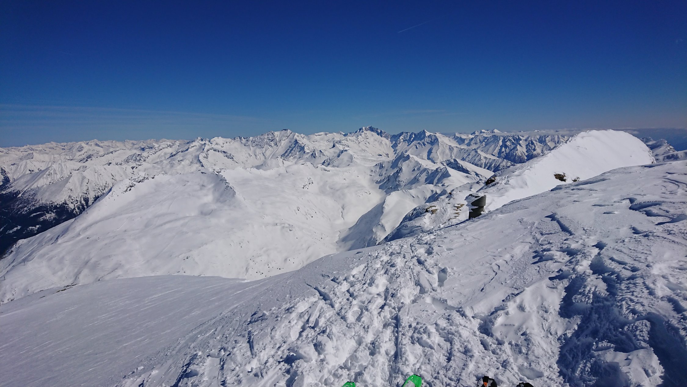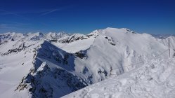 24.03. Schareck. Aufstieg von Kolm Saigurn über die Fragnater Scharte. Abfahrt auf ca. 2500 und Aufstieg neben der Piste zum Sattel (Bergstation). Nordostseitiger Aufstieg zum Gipfel. Abfahrt auf der Piste und Aufstieg zur Niederen Scharte. Am Grat entlang zum oberen Teil der Winterrinne. Abfahrt zur Hütte bei ordentlich Wind und Schneeverfrachtung.