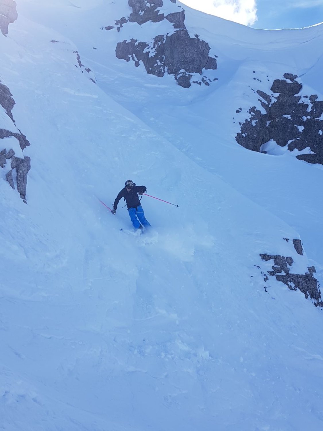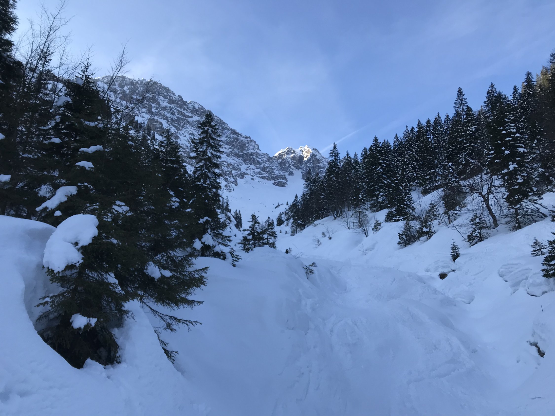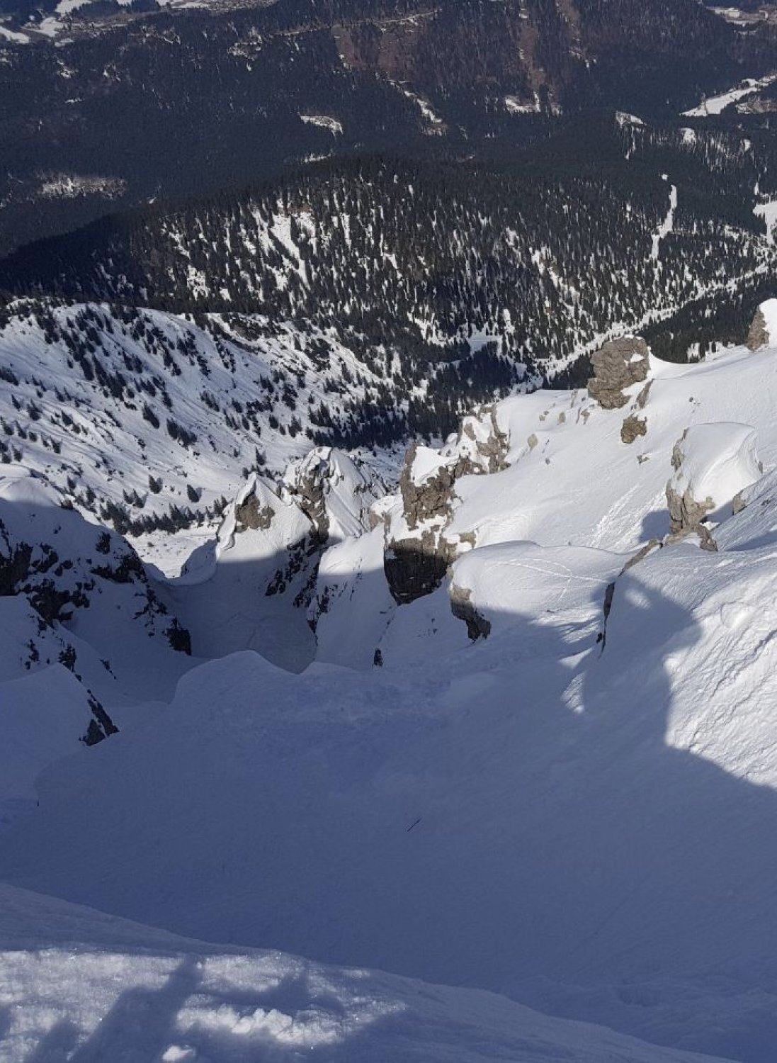 Perfekte Verhältnisse! Überdurchschnittlich viel Schnee. Beim Start hart gefroren nach klarer Nacht. Entlang des Kärlesbaches aufgrund der Schneemenge bequemer Aufstieg. Im Thanellerkar dann bereits feinster Pulver und sehr gut zu gehen. Ausstieg zur Scharte eigentlich auch mit Ski machbar, jedoch diese 50 Meter leichter und sicherer zu Fuß. Auf dem Südrücken dann griffig und problemlos zum Gipfel (Harscheisen waren heute nicht zwingend erforderlich). Einfahrtsbereich Nordrinne sehr gut und in der gesamten Rinne perfekte Schneebedingungen - Pulver und keinerlei Hart- oder Eisstellen. Selbst die beiden Engstellen, an denen man normalerweise abklettern muss, können problemlos komplett gefahren werden. Unten raus zwischen den Latschen und auf den freien Hängen nochmal ein Pulvertraum. Rest im Tobel dann aufgrund der hohen Schneelage auch gut machbar.
