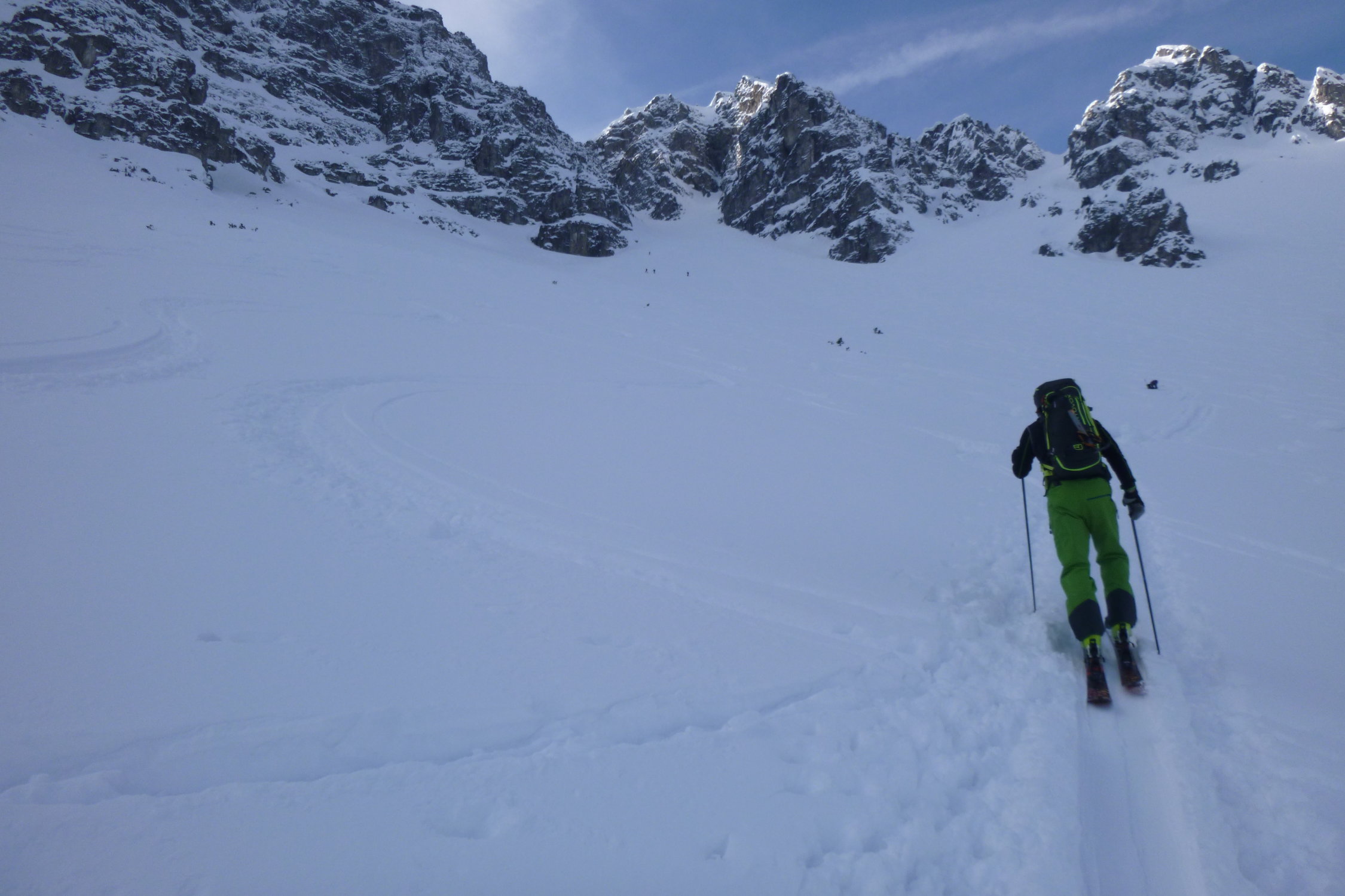 Überdurchschnittlich viel Schnee - insofern grundsätzlich noch lange machbar. Verhältnisse müssen aber je nach Wetterentwicklung immer wieder neu eingeschätzt werden. Schwierigkeiten in Aufstieg wie Abfahrt können bei dieser Tour sehr stark variieren.