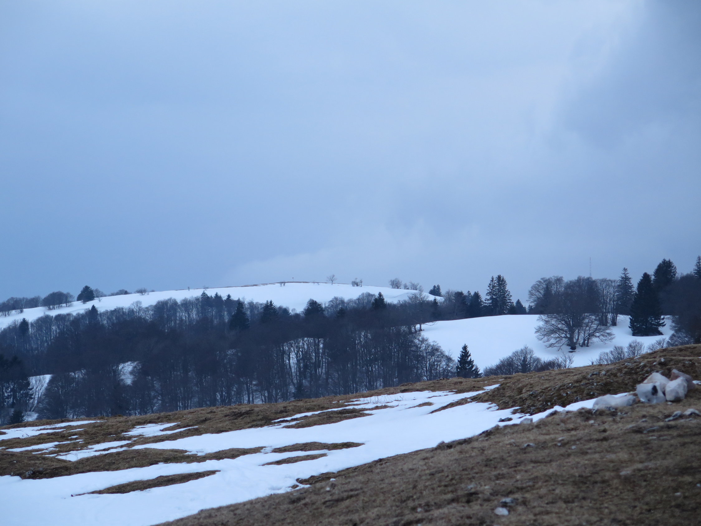 Wetter: Viele Wolken. Nur ab und zu kleine Löcher in der Wolkendecke. Ausser einzelne Regentropfen trocken. Mit der zeit aufkommender Wind. Zunächst nur auf Gipfel, dannach auch unten im Dorf.