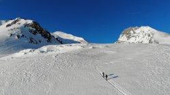 Beste Verhältnisse, es hat sehr gut Schnee, der Gletscher ist perfekt eingeschneit. Ab Adlerpass kurze Tragepassage der Ski's. Der Gipfelaufschwung ist gut mit den Ski begahbar. Die Abfahrt geht Direkt sehr gut. Oben windgepressten Schnee!