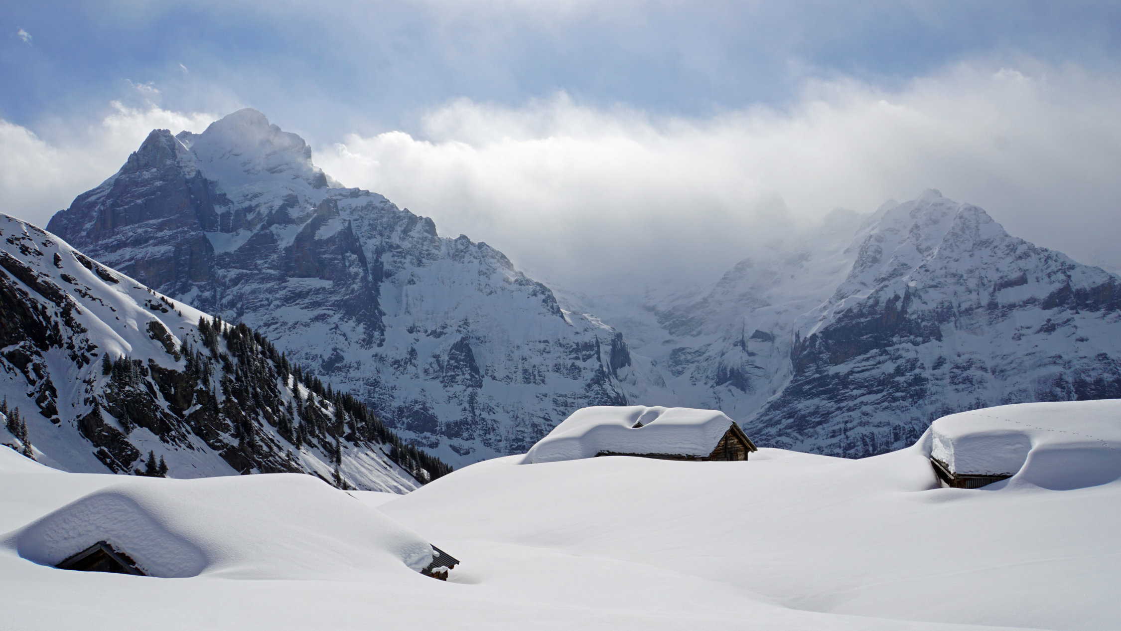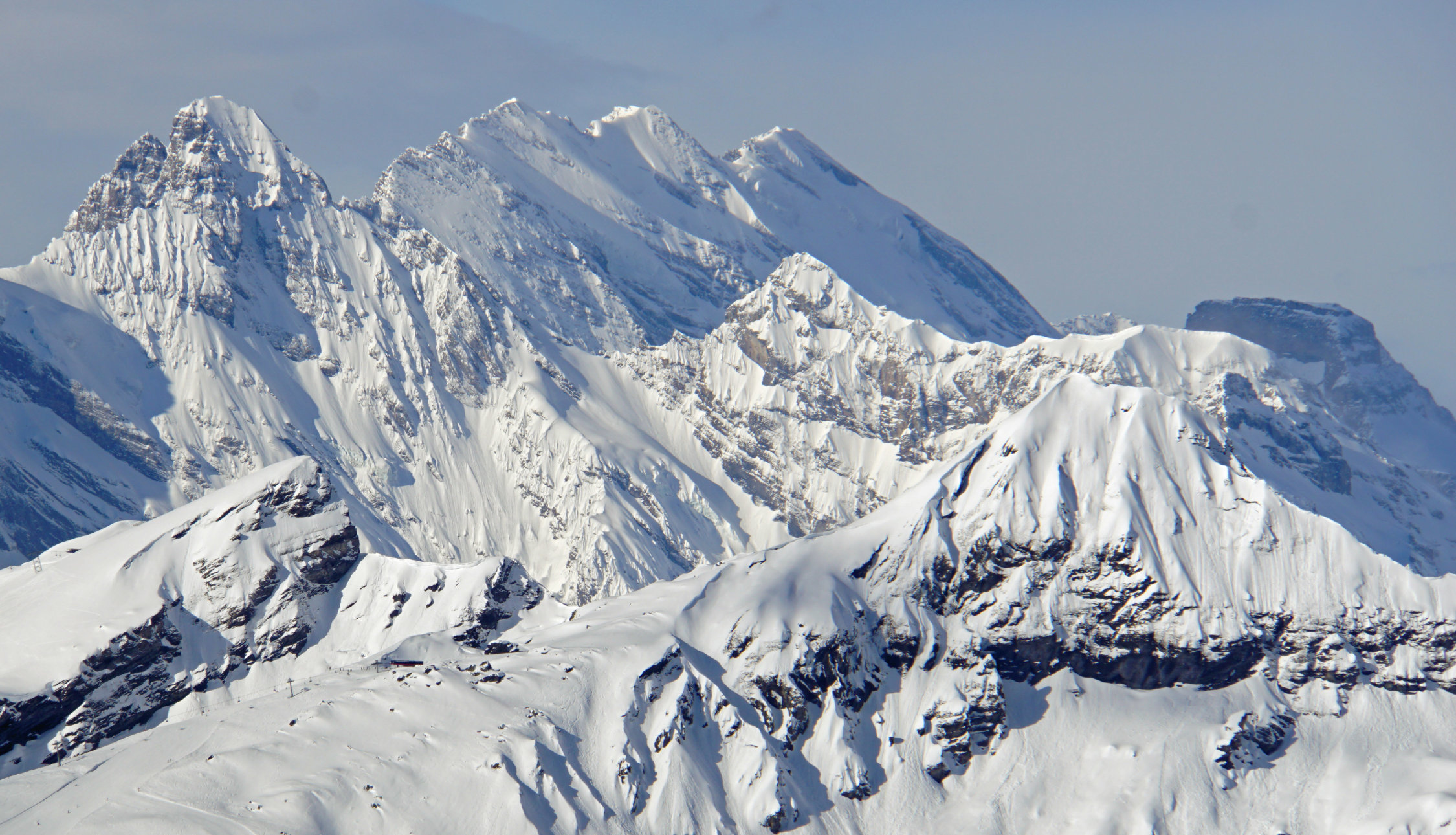 Noch überraschend gutes Wetter und recht viel Schnee. Es gab noch keine Spur zum Faulhorn aber jetzt sind einige Tourenskifahrer da hinaufgegangen.
