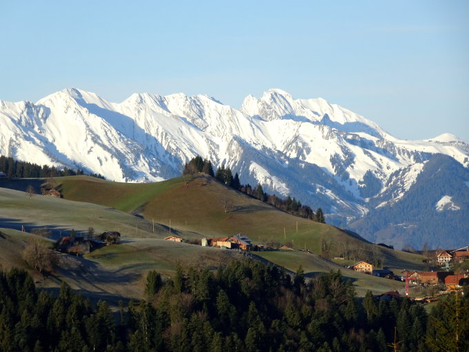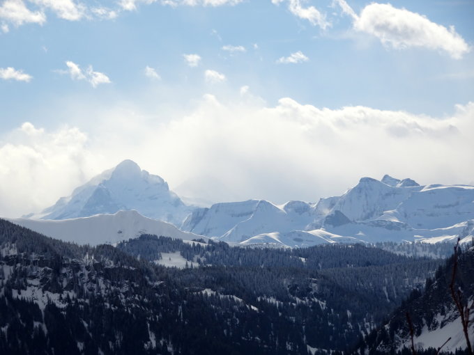 Frühlingsdilemma: Schneeschuhe mitnehmen oder nicht? Heute habe ich bitter bereut, dass ich sie nicht mitgenommen habe. Die Strecke Chnubeli-Grossi Honegg mit dauerndem Einsinken ist mir fast unendlich vorgekommen. Etwas Hilfe hatte ich von einer alten Spur die überschneit war. Die Unterlage dieser Spur war tief, nass und weich, so dass ich trotzdem viel einsank. Trotz dieser Mühe habe ich einen schönen Tag genossen und das auch dank dem Föhn. Wunderbare Stimmungsbilder.